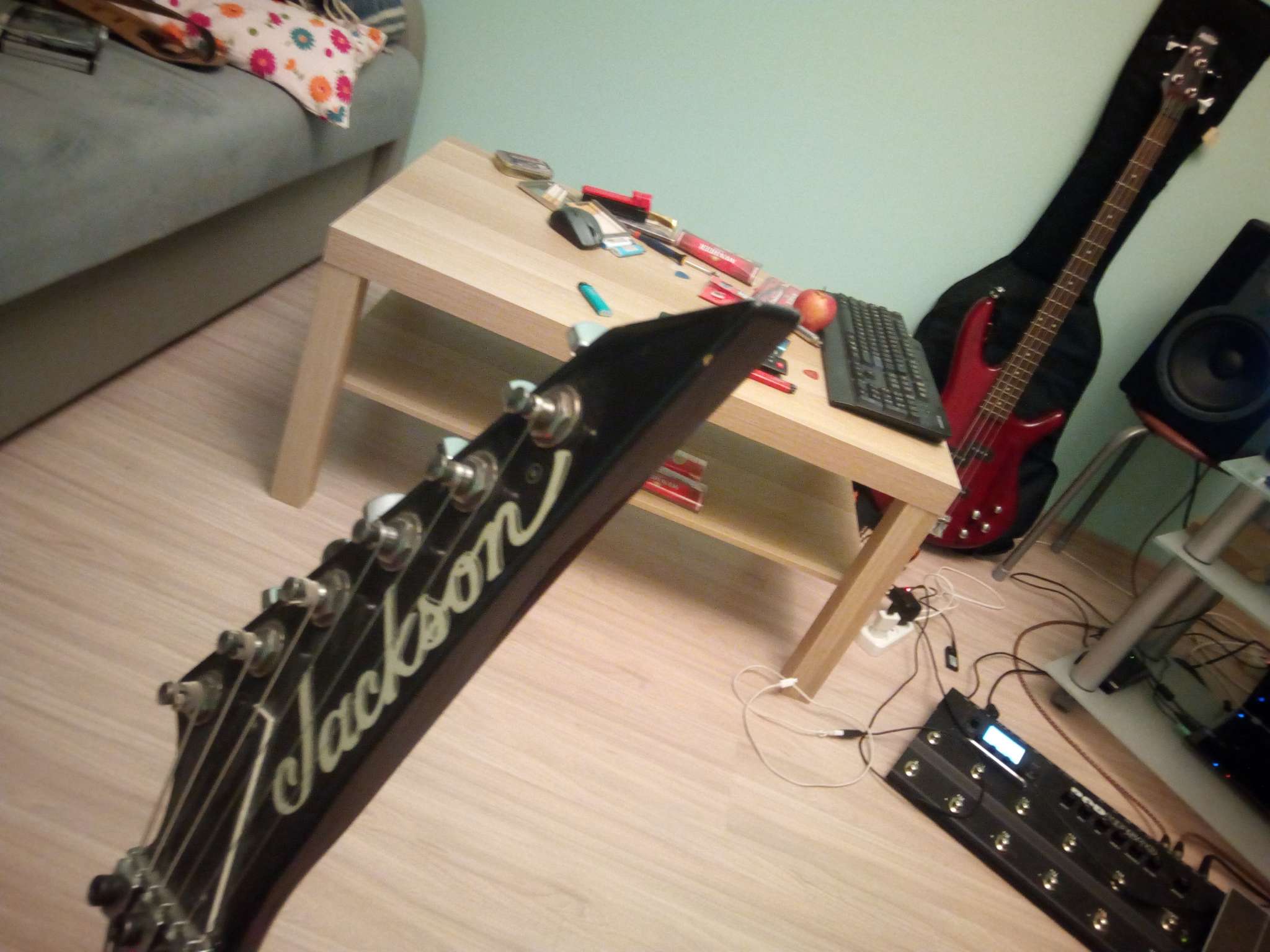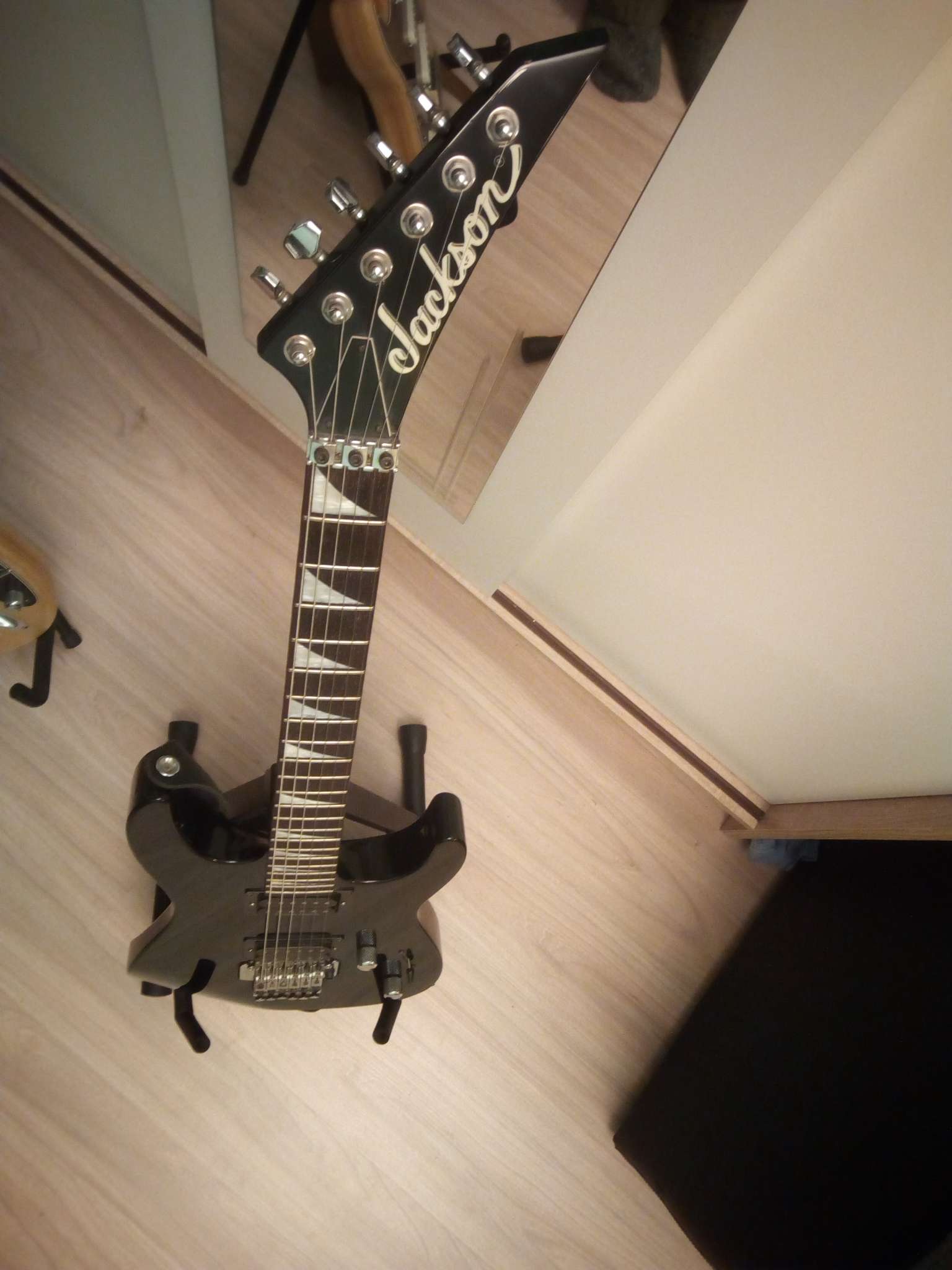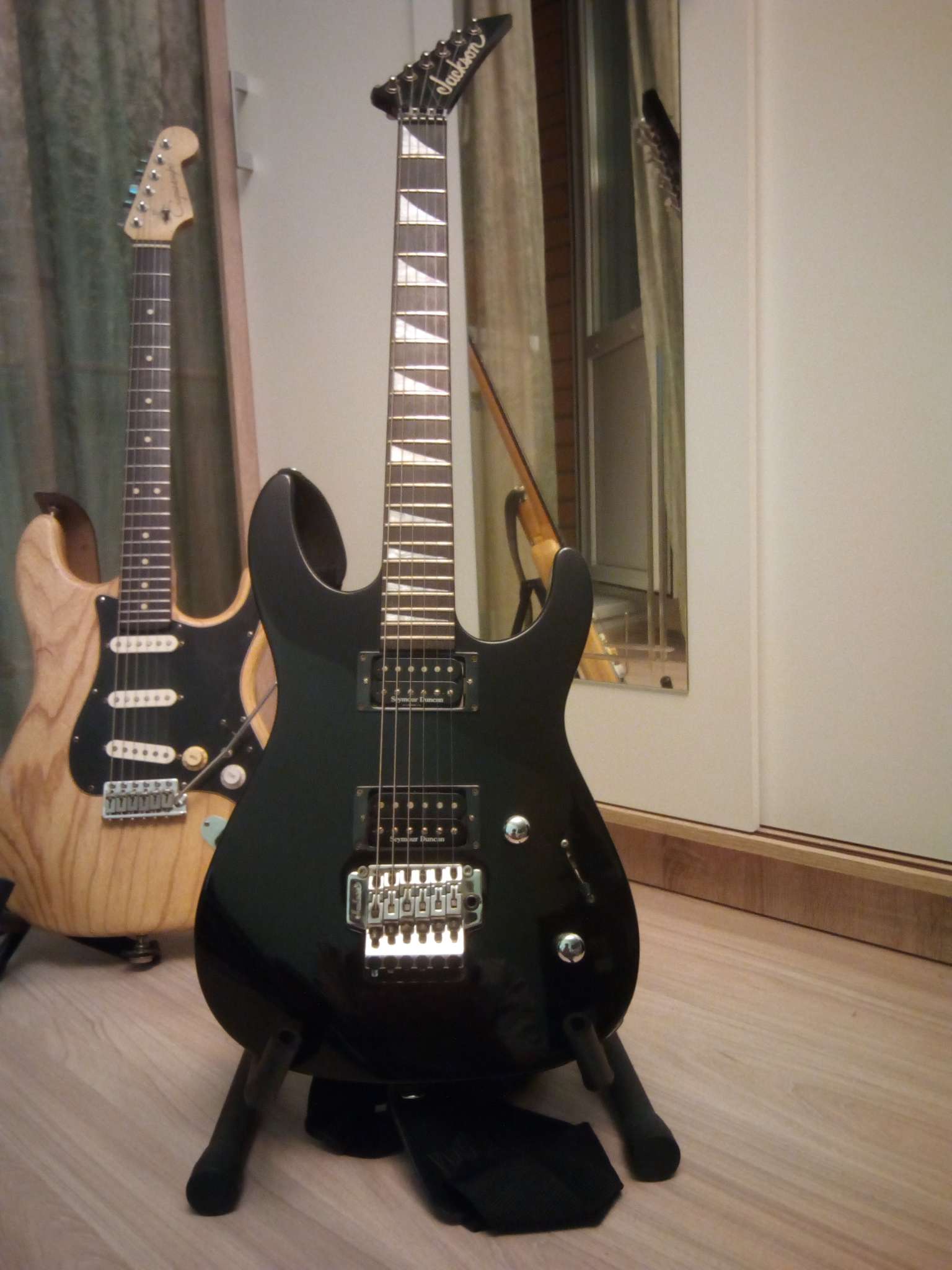 Инструмент полностью отстроен - прогиб грифа, высота струн, мензура, Флойд. Новые струны 10-46.