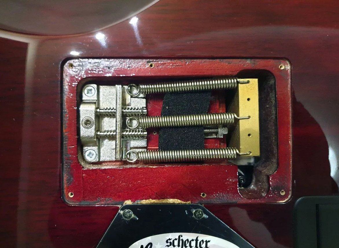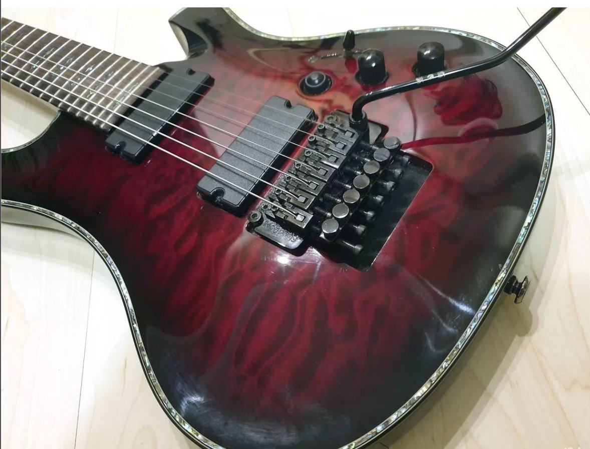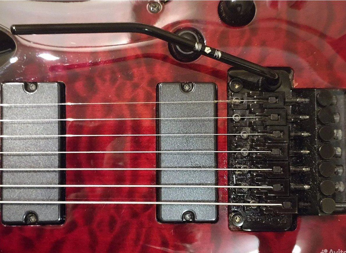 Был прокачан по максимуму - корейский флойд заменен на германский с толстенным бронзовым тонблоком, германский топлок с калеными винтами зажима. Поставлен Schaller Sure Claw для супер-удобной регулировки натяжки пружин. Рычаг заменен на японскую систему Red Bishop Magik arm - свободно вставляется и вытаскивается как у Ибанезов, но не имеет изнашиваемых пластиковых деталей, а его свобода в любой момент регулируется гайкой. Люфтов нет ни в каком положении. Кастомные пассивные звучки Федора Чернышева с отсечкой, выбирались из 6 вариантов специально для этой гитары. Лады в идеале с экшеном струн меньше миллиметра.