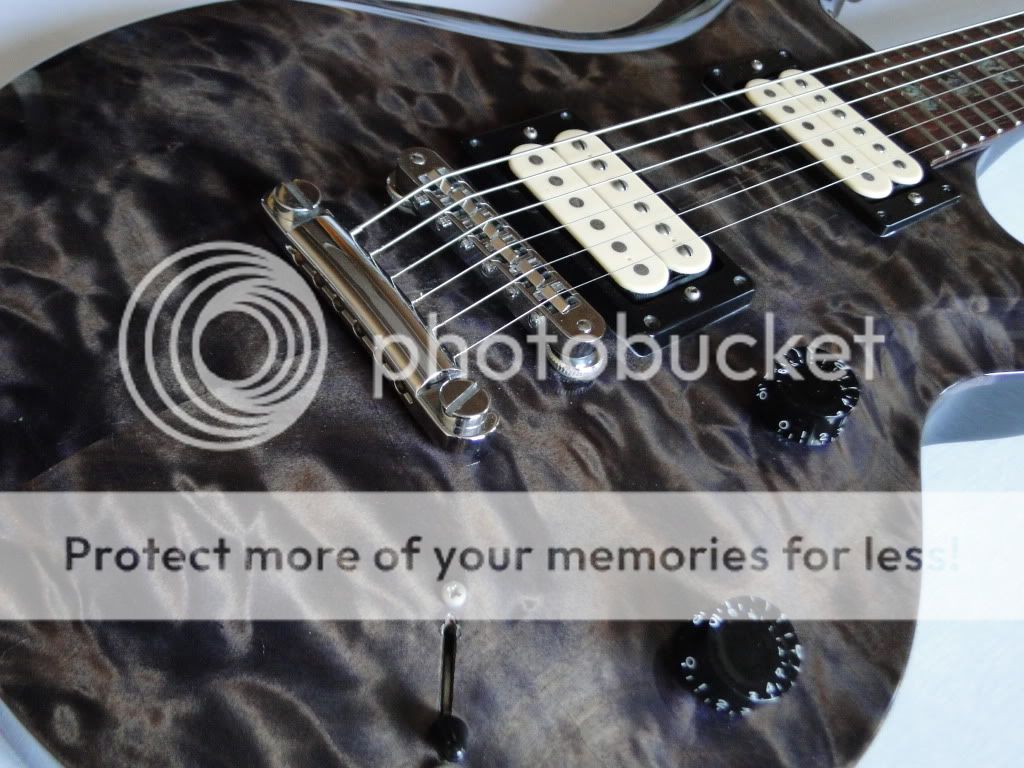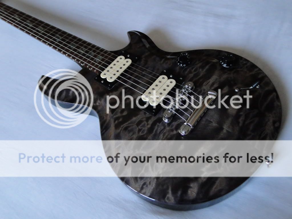 У гитары хороший баланс при игре стоя (в отличие от модели Polaris Pro, где дека была полегче). Гриф - что-то среднее из всего, на чем доводилось играть, что по ширине, что по толщине. Может чууть шире и чуууть толще, чем wide/thin на ПРС. Лады - традиционной МакИнтарффовской формы, т.е. больше тругольной обработки, нежели овальной, ну все равно очень удобны. В эргономике не понравилось только 2 момента: не люблю 5типозиционники, и то, что из-за сильной рельефности топа, ручки тона и громкости находятся в разных плоскостях, что немного сбивает с толку, хотя это дело привычки.