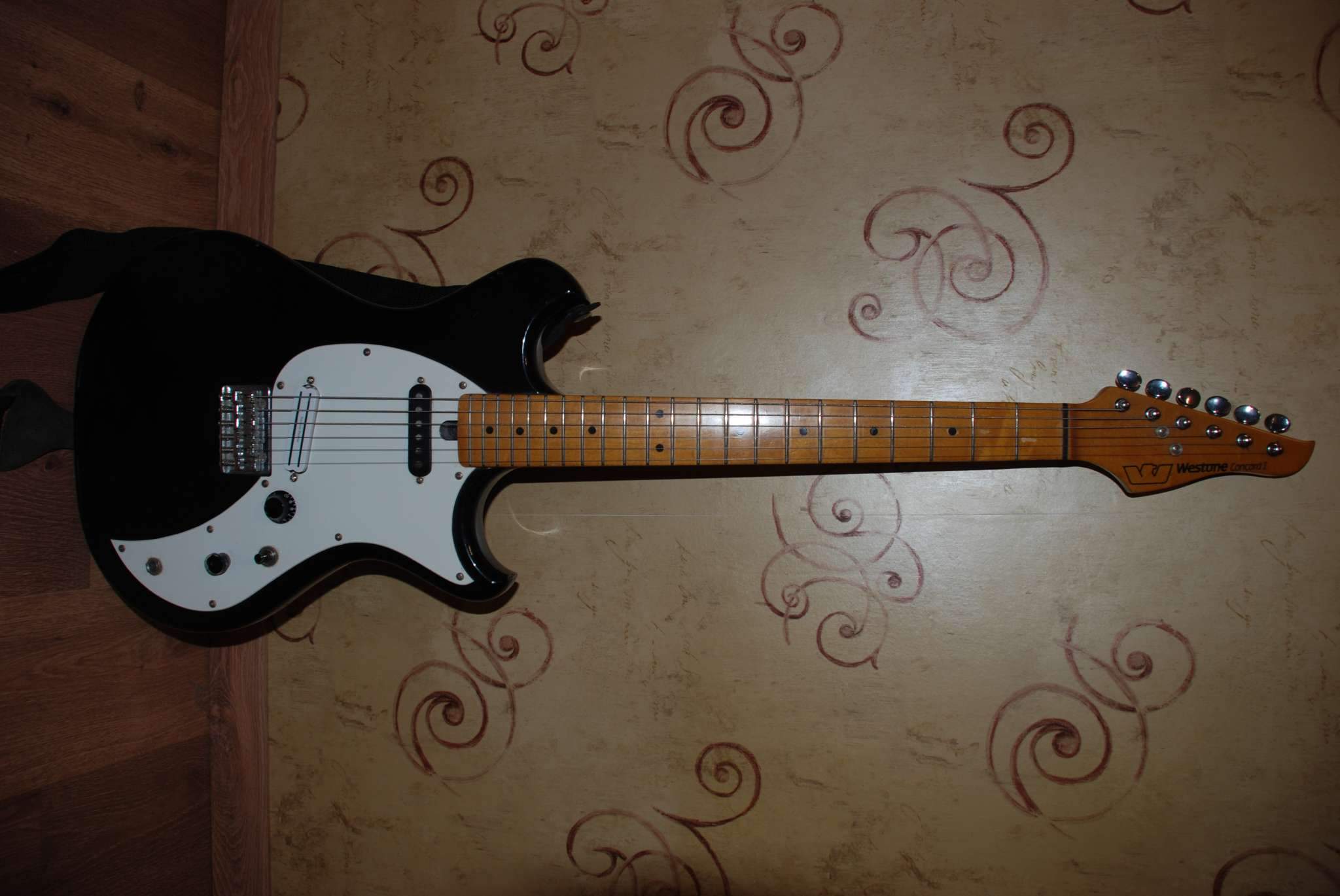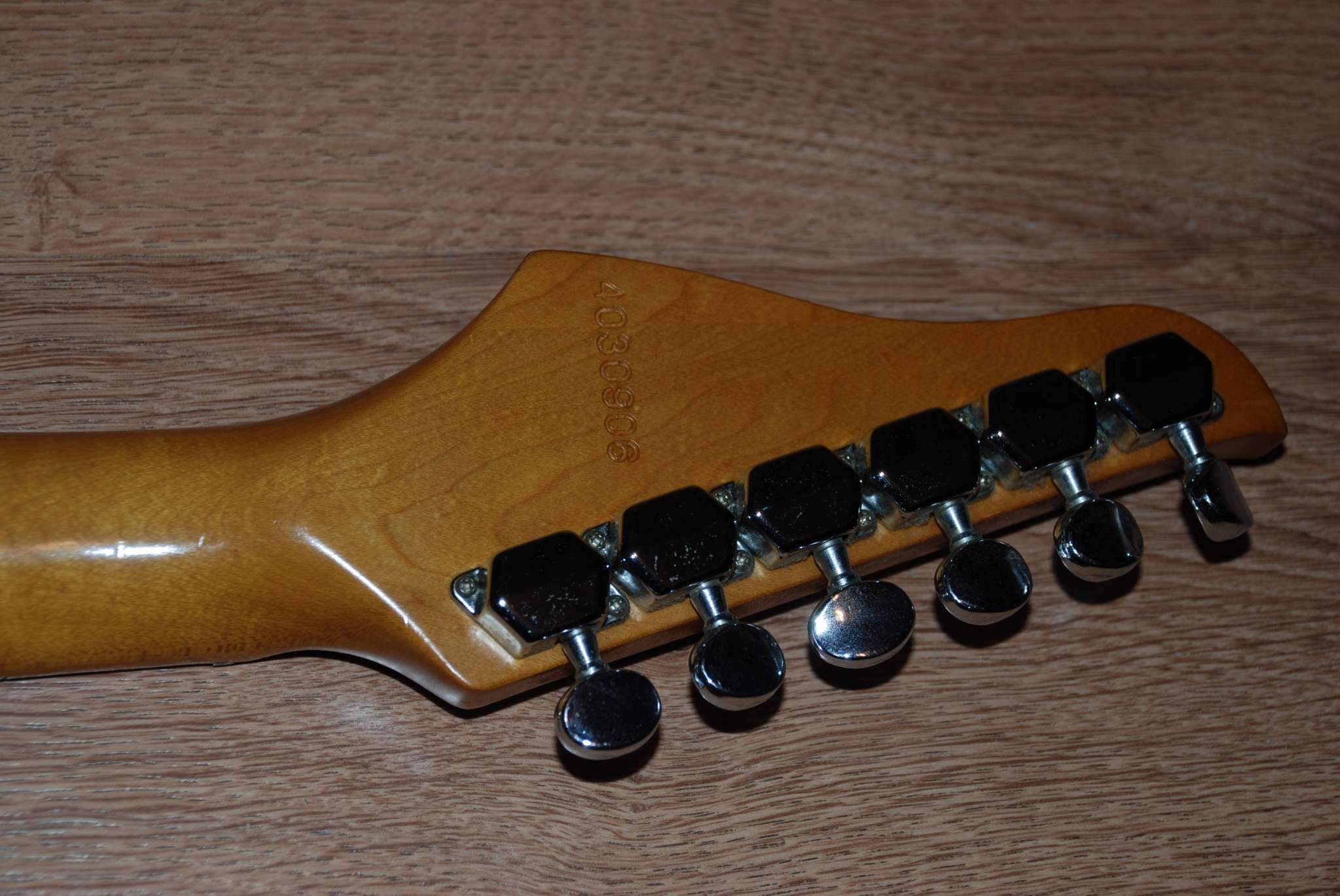 Японская гитара, сделанная на заводе matsumoku в 82-84 г. Гриф болченый. Нековый звукосниматель заменил на seymour duncan hot rails (рельсовый хамбакер) в мастерской у профессионалов. Состояние хорошее, за исключением пластмассовой ручки одного потенциометра (она откололась и нуждается в замене, что, впрочем, на играбельности никак не сказывается). Эксплуатировалась и хранилась бережно. Есть небольшие сколы, царапины. Мягкий чехол и ремень в комплекте. Мензура 24,75" (628,7 мм). Гриф очень удобный. Лады новые, менялись в мастерской. Обмен не интересует. 12000 руб.