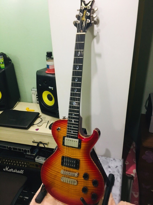 Гриф: Красное дерево, профиль диновский V-neck (на удивление удобный, но нужно щупать)