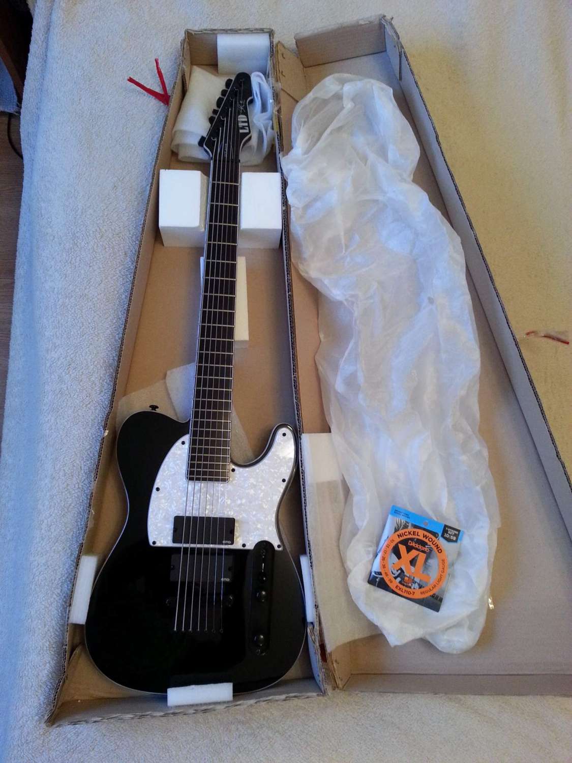 Из приятных бонусов: свежие Ernie Ball 13-74 (из восьмиструнного набора) на инструменте и комплект новых D'Addario 10-59 для любителей поподтягивать струны.