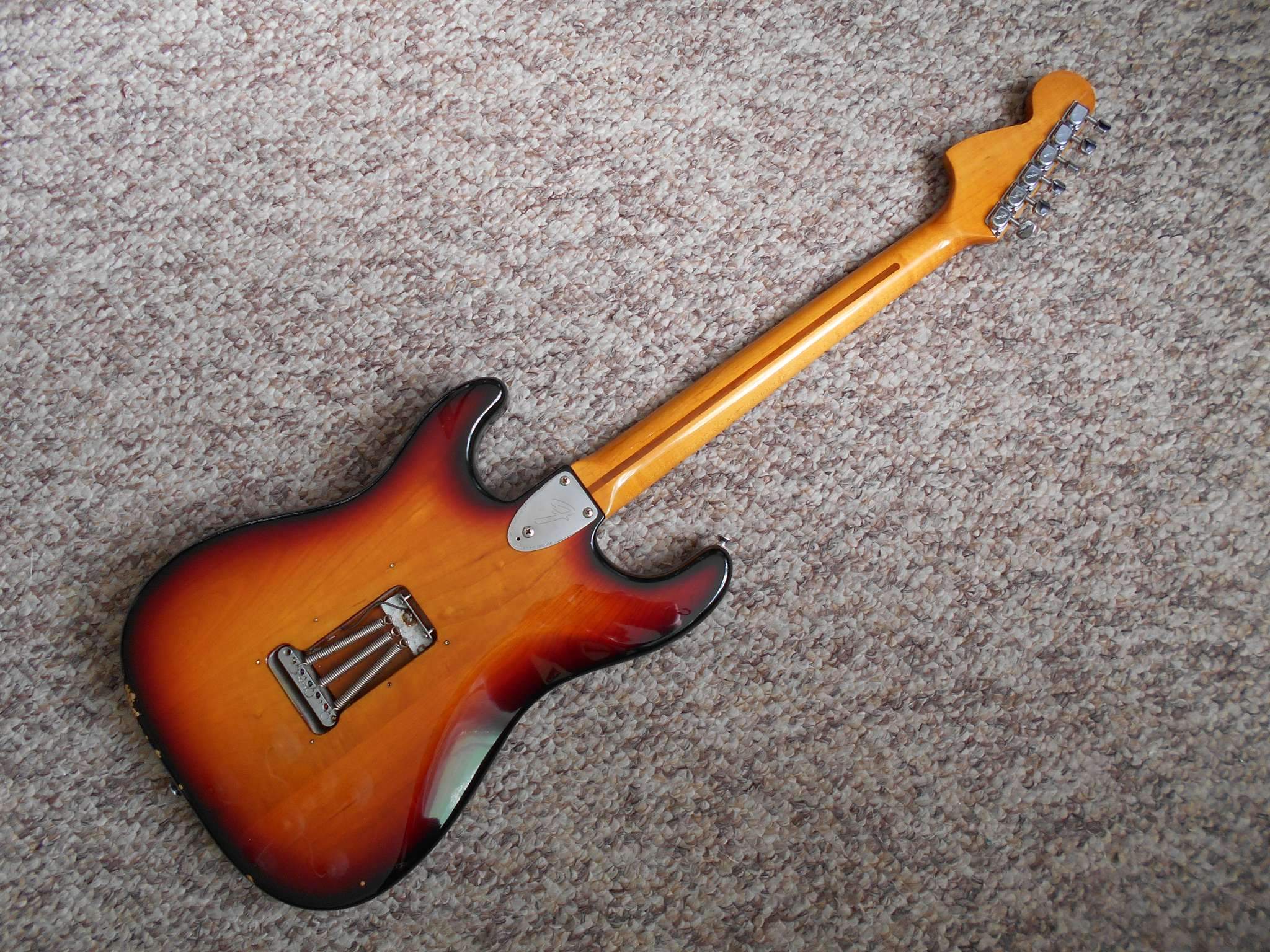 Продается Fender Stratocaster 1978 USA, так называемая "эска". Сочетание палисандровой накладки с ясенем, так же, как цвет sunburst - редкий гость на рынке среди гитар этой серии. Гитара долгое время была студийным инструментом одного американского музыканта, поэтому, очень хорошее состояние для инструмента тех лет. Звукосниматели с пигуардом были заменены. Все сделано по уму для "рабочей лошадки". Нэк, по всей видимости, родной - яркий кусачий с небольшим выхлопом классический фендер. Мидл - более жирненький и серединистый, что очень кстати для ясеневых гитар, отлично ложится в микс в качестве ритм партий. Ну и хамбакер - старенький Сэймор, дает собранный четкий перегруз. С "правильным" усилителем звучит, прям Ричи Блэкмор у тебя дома