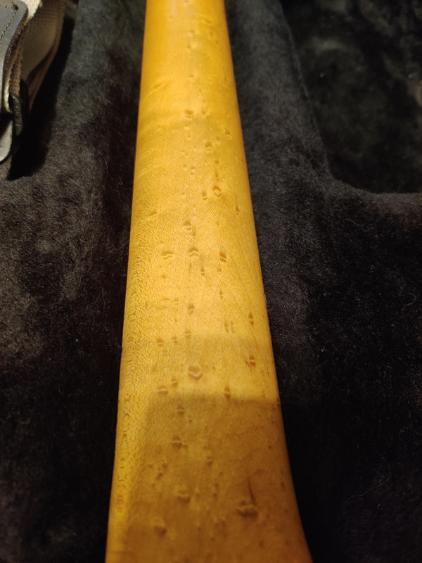 Тушка ясень, гриф клён "птичий глаз" (см. на фото), накладка палисандр.