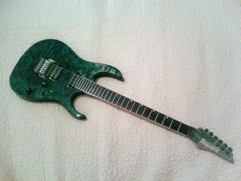 Инструменту 14 лет. Лады отшлифованы, гитара полностью отстроена и готова к работе. Также сзади отфразеровано место под якорь машинки и крепление рычага, теперь диапазон работы машины вверх стал поистине впечатляющим. Отличия этой гитары от остальных этой же серии: звучки DiMarzio Steve's Special(bridge) и DiMarzio Air Zone(neck), 3-х позиционный переключатель, push-pull на ручке тона (переключатель отсечки датчиков). Гитар именно такого цвета выпущено всего 60 штук в Мире!!! В комплекте с гитарой идет фирменный кейс Ibanez (состояние идеальное), рычаг, ключи, шнур, две пружинки. ВОЗМОЖНА ДОСТАВКА В МОСКВУ.