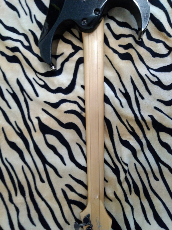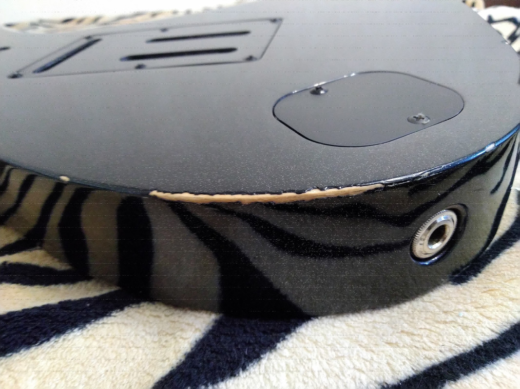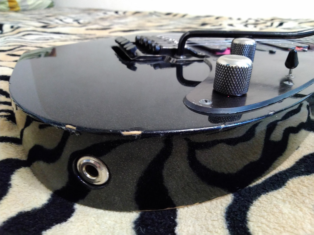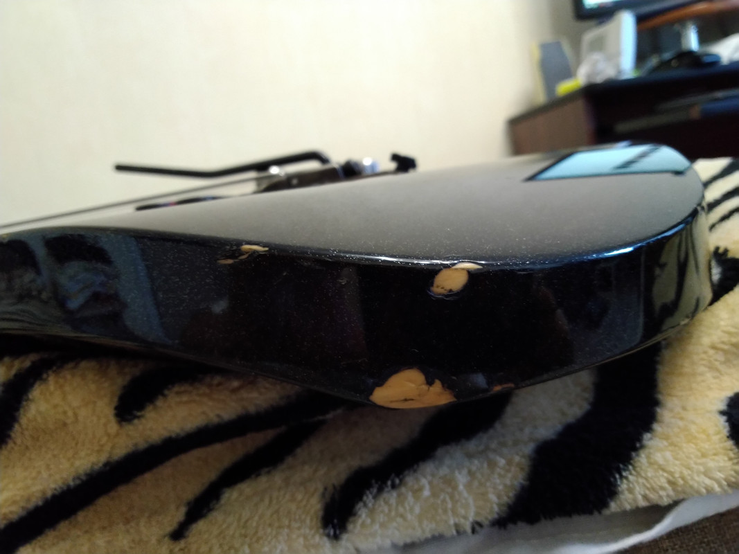 Один из болтиков топлока был утерян до меня, я поставил почти такой же. Какой-то чудак покрасил звучки в розовый, оранжевый и зеленый краской типа гуаши. Её вполне можно оттереть до конца, но нужно заморочиться и снять звучки. Косметика - на фото - есть сколы краски по краям. В остальном все огонь. Флойд не смотря на возраст и потертость строй отлично держит. Анкер рабочий. Кроме самой гитары больше ничего нет.