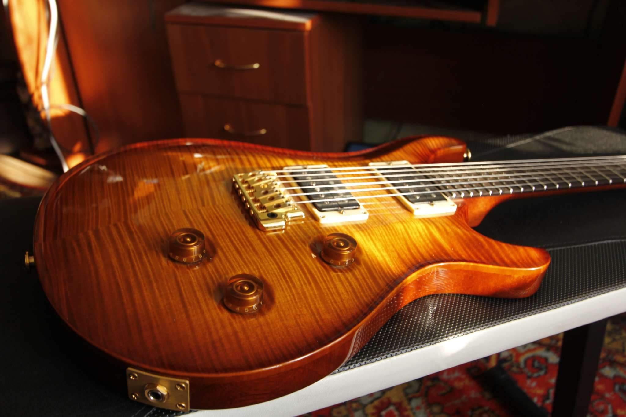 Вместо родных звукоснимателей HFS, поставил - PRS 59/09 , на мой взгляд они гораздо интересней. Мастером были установлены новые лады (нержавейка).