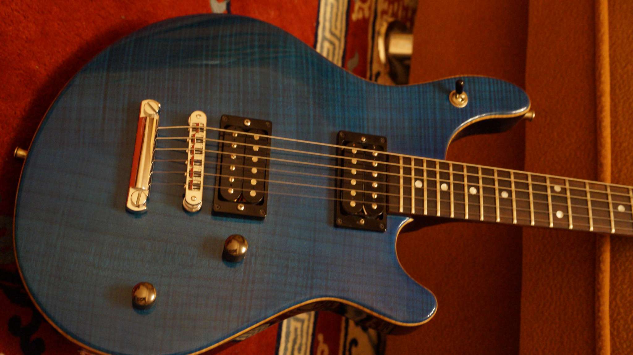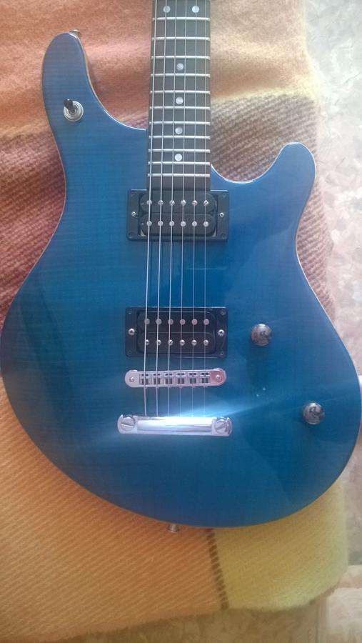 Дека сделана из гондурасского махагона с кленовым топом, без полости внутри, гриф тоже краснуха, в цвет гитары, что большая редкость, с палисандровой накладкой. Форма похожа на PRS, EVH, хотя чуть толще последней. Звук плотный, очень сильно похож на гибсоновский, подойдёт для любых стилей, ну разве что кроме откровенного мяса. На концерте, в блеске софитов смотрится офигительно. Гриф ровный, лады не звенят., запас: играть и играть. Колки Grover - строй держат железно, бридж Shaller, фиксированный.