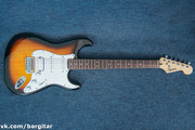 Итак, инструмент наверное самой известной фирмы (и формы) - стратокастер! Данная гитара - типичный стратокастер, с небольшим отличием - в бридже вместо сингла стоит довольно мощный и злой хамбакер, так что дает возможность играть с мощным дисторшеном и уверенным гейном. На синглах гитара в точности выдает все стратовское стекло, четкость, кристально чистый звук - а чего вы еще хотели от страта? Саунд сочный, так и хочется играть что-то наподобие Джонсона или Бадди гая. Очень хорошо гитара себя чувствует и при разного рода перегрузах - хоть на ламповом кранче, хоть с Тьюбскримером - саунд очень четкий и отлично читается, такой звук вполне подойдет и хэви-металлистам. В итоге получился весьма занятный инструмент, которому по силам работа в самых разных стилях классического (и не очень) рока, эта гитара из тех, которые чувствуют себя комфортно в любом миксе любой плотности.