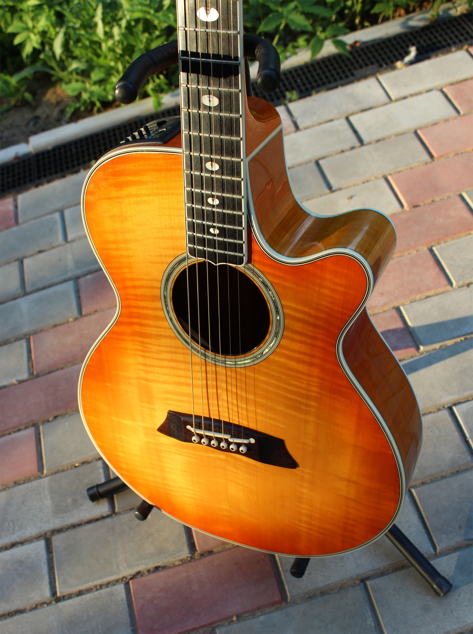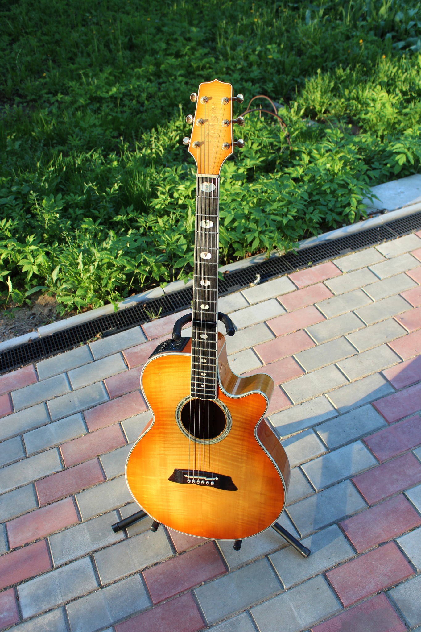Продаю электроакустическую гитару Takamine NPT-115 (Япония, 1995). Цвет Lemon Drop. Гитара в отличном состоянии. По спекам: верхняя и нижняя деки - волнистый клён, обечайки: клен, гриф - красное дерево, накладка на грифе - черное дерево, ширина верхнего порожка: 42,5 мм, бридж - палисандр. Верхняя и нижняя деки гнутые, как на джазовых инструментах. Инкрустация грифа - перламутр и абалон. Преамп отремонтирован, заменены мёртвые электролиты, всё работает. Потрясающий звук и убойный внешний вид. Кейса нет, есть чехол. Поэтому, без пересыла. Только Москва и Область.