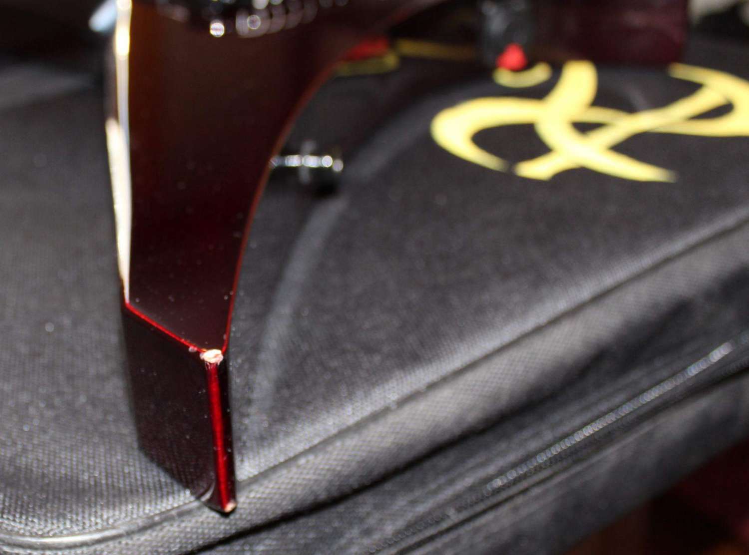 Звук бесподобный, много низких частот, поразительный сустейн. В комплекте твердый контурный кофр из полимера, тоже изготовлен на заказ. Идеально защищает инструмент, весит меньше килограмма.