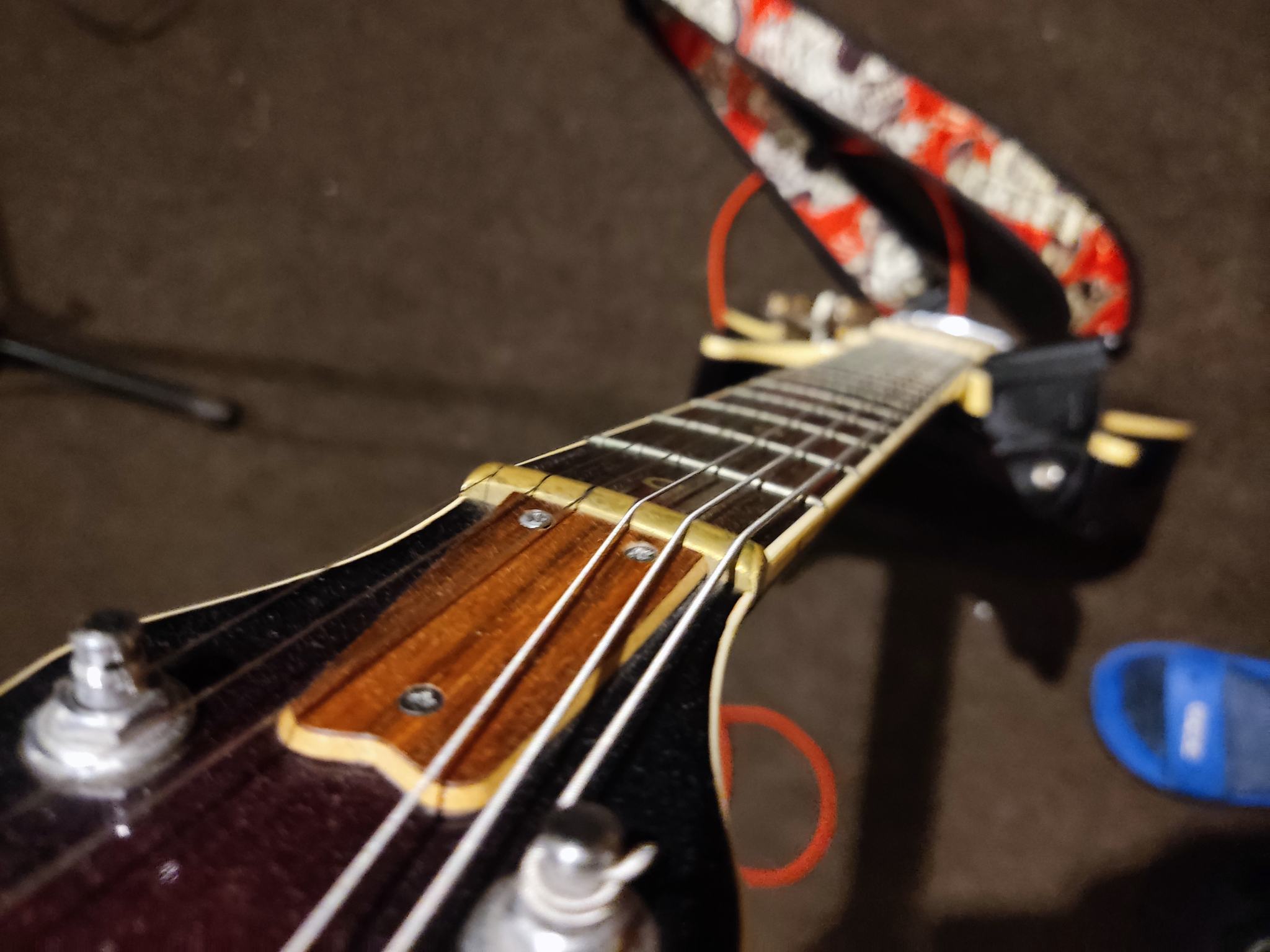 Недавно отшлифовали лады у мастера и полностью отстроили. Этот вашбурн я купил для студийной работы - в этом плане он бесподобен.