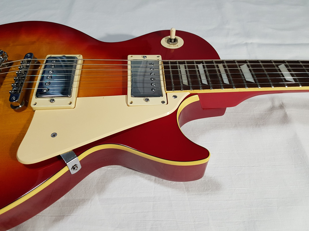 Отличный фирменный японский инструмент конца 70-ых в очень хорошем состоянии. Звучание достойное, потрясающий сустейн. Несмотря на дату производства, гитара может выдавать, помимо очевидного тёплого винтажного звука, вполне современное мощное, жирное хайгейновое звучание, т.к. "выхлоп" у датчиков очень сильный.Подойдёт для исполнения различных жанров музыки от джаза до экстремального метала. В общем, типичный Lеs Pаul. Гитара выполнена из цельной древесины, т.е. в корпусе нет полостей, отсюда и не малый вес - более 4,5 кг.