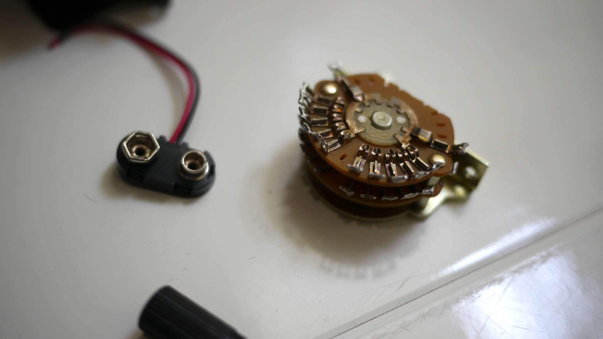 Есть несколько нюансов - в комплекте 2 преампа Acousti-Phonic один из которых не исправен (для работы нужен только один). Три шнура оборваны от пьезо вставок (см. фото) и я не знаю возможно ли их починить.