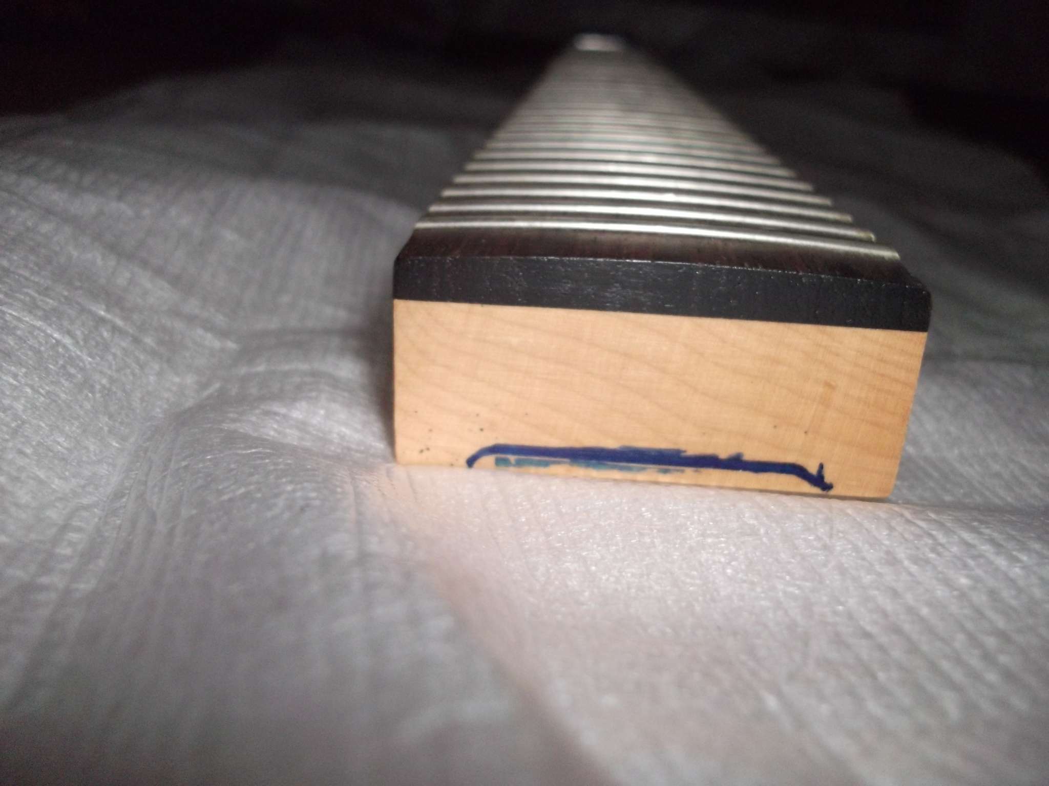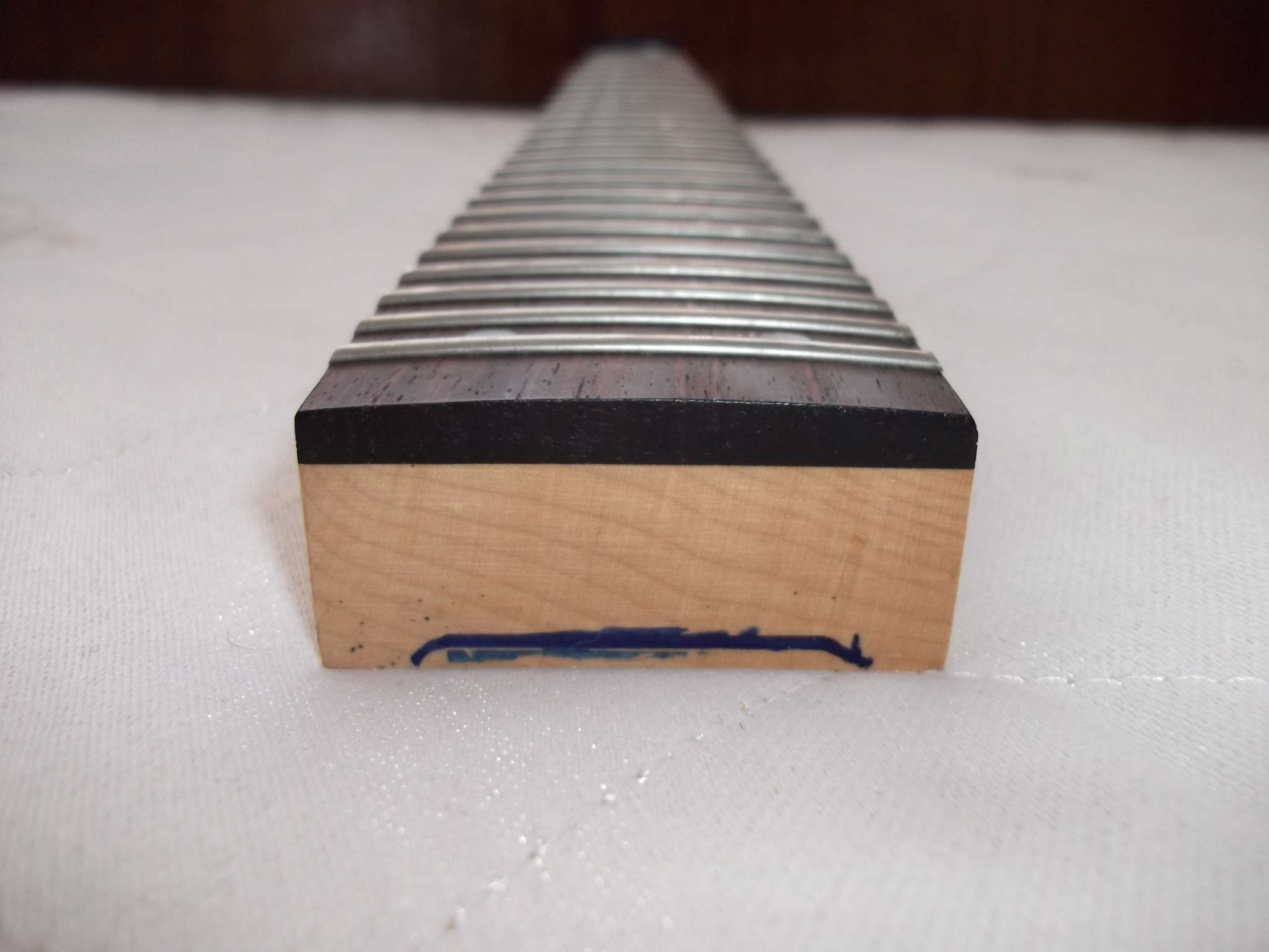 Желательно чтобы мастер подточил лады, так как они выпирают по краям грифа, ну и подшлифовал их, также почистить накладку.