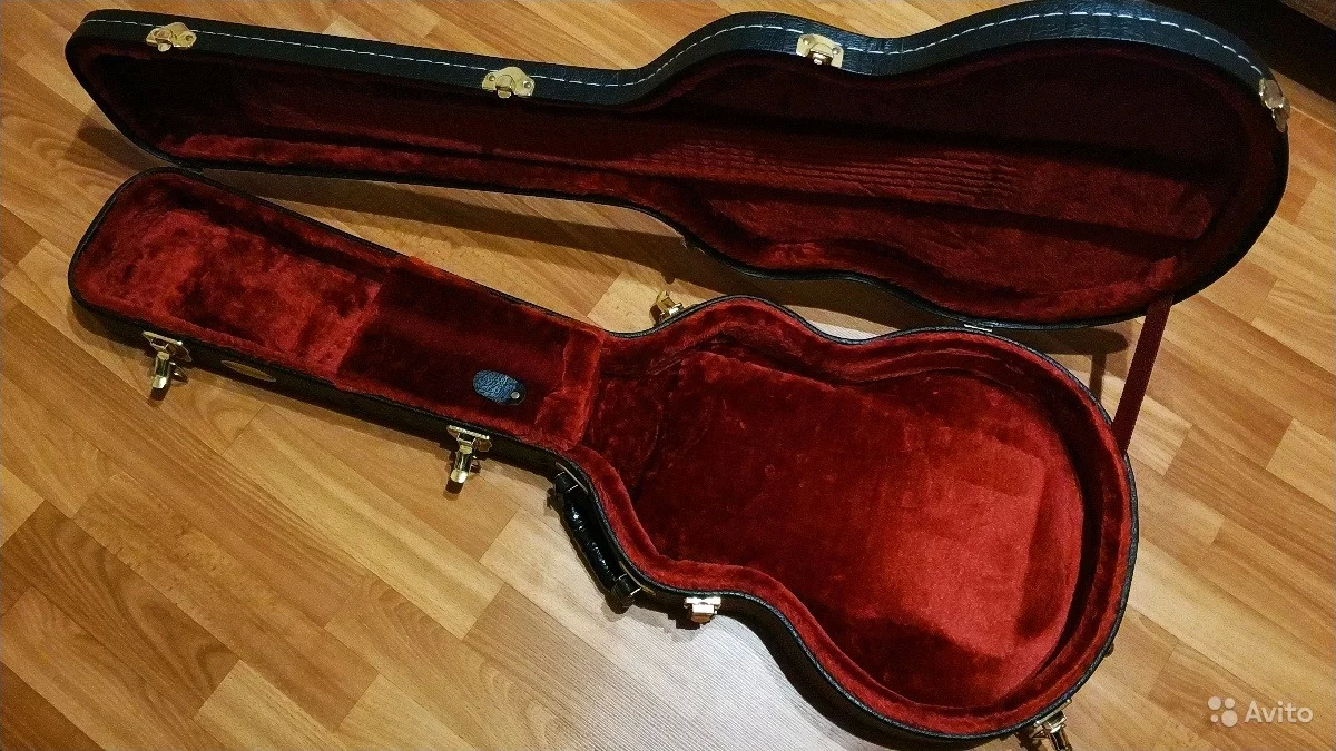 Внутри кейс имеет мягкую обивку красного цвета. Прочные стальные замки плотно закрывают кейс, предохраняя гитару от пыли и влаги.
