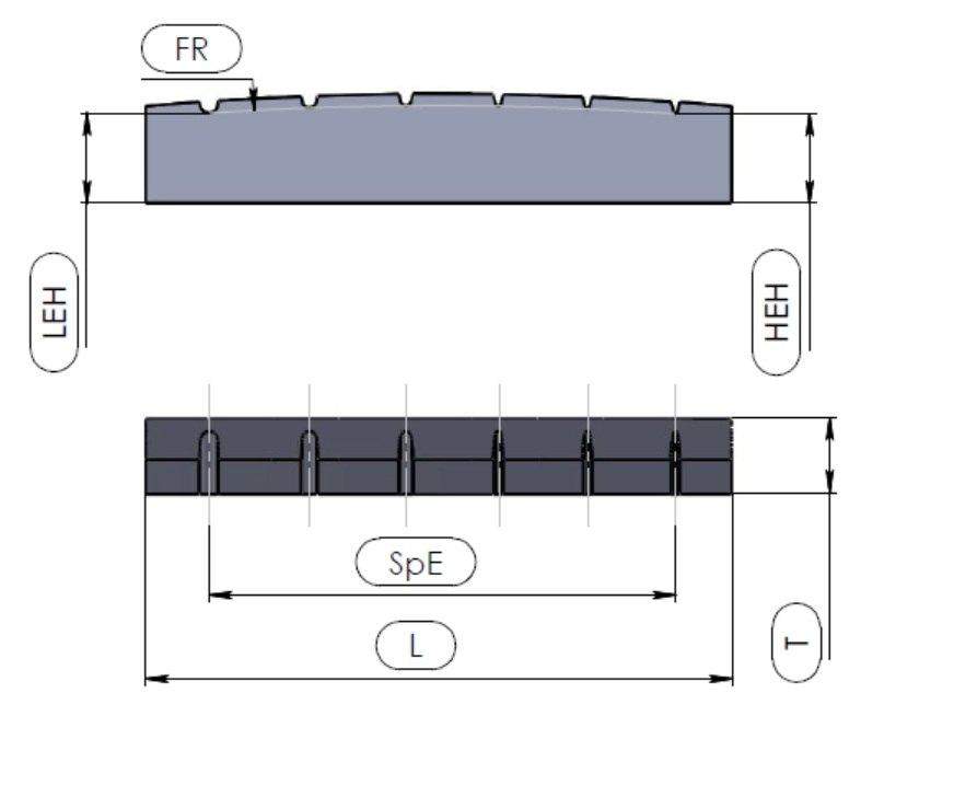 Если нет уверенности в точности при определении размера, то лучше длину и толщину (L и T) указать немного меньше (чтобы не вышло ситуации когда порожек не влезает в паз или выступает с боков грифа), а высоту струн чуть больше (тут уже понадобится наждачка с зернистостью 80 или около того плюс прямые руки).