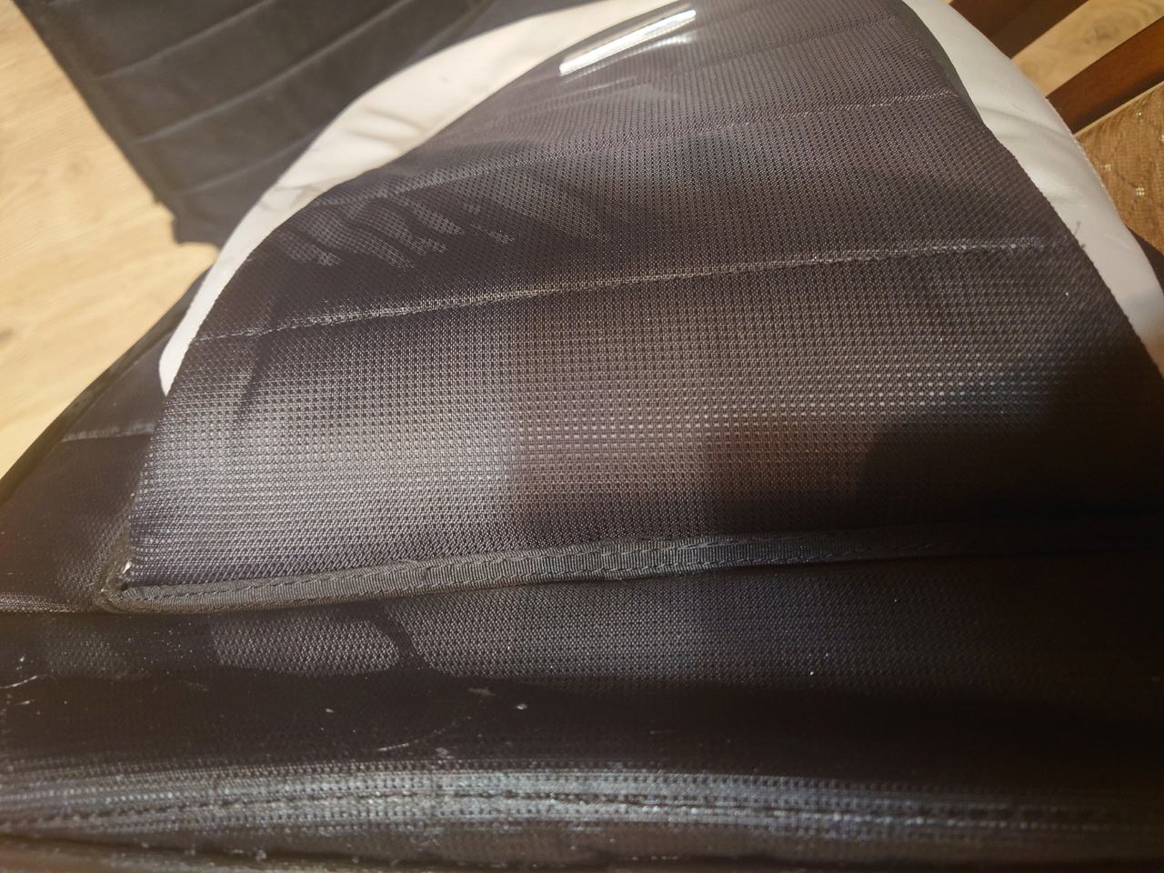 В отличном состоянии. Есть карман на молнии и ручка для переноски.