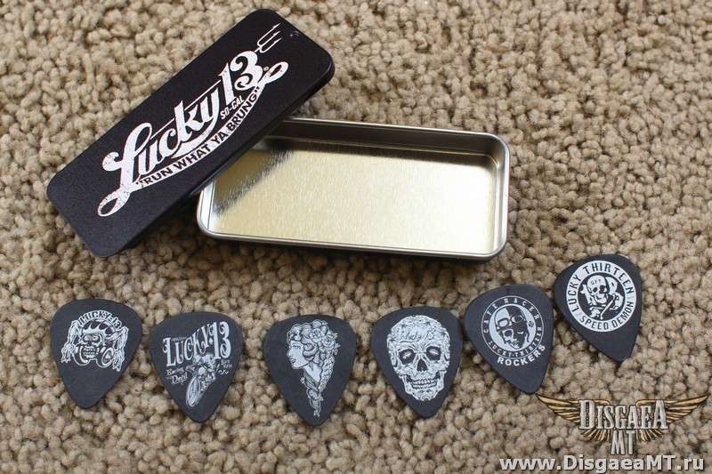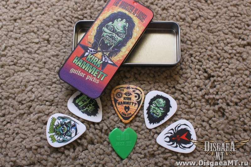 В наличии большой ассортимент именных наборов от любимых музыкантов с уникальным дизайном. Каждый набор включает в себя сет из шести медиаторов с фирменными принтами, упакованных в металлический бокс.