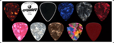 материал целулоид, перламутровые: Thin (.46mm), Medium (.71mm) and Heavy(.96mm) - цвета: белый, черный, красный, разноцветный, розовый и др.
