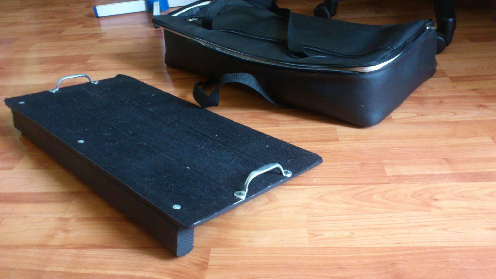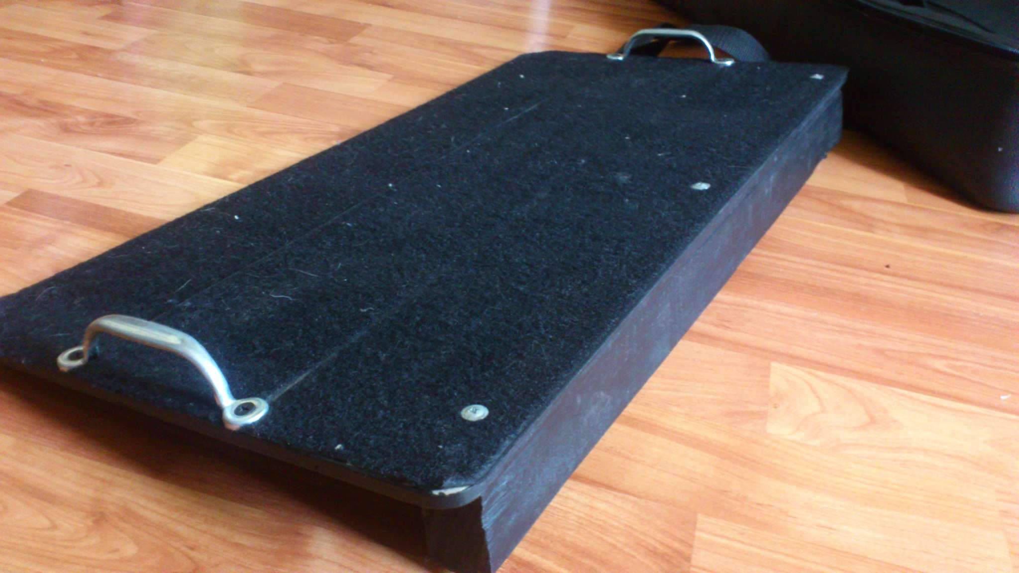 Самодельный педалборд с кожаной сумкой, сшитой на заказ. Размеры 60х30см. Вмещается порядка 8-10 педалей BOSSовского формата, либо 6-7 + квакушка типа Cry Baby. Угол наклона +- 30 градусов. На дне липучка (не колючая ее часть). Имеются ручки по бокам, чтобы было удобно брать и класть борд обратно в сумку. Считаю адекватным оценить свой труд в 2000р.