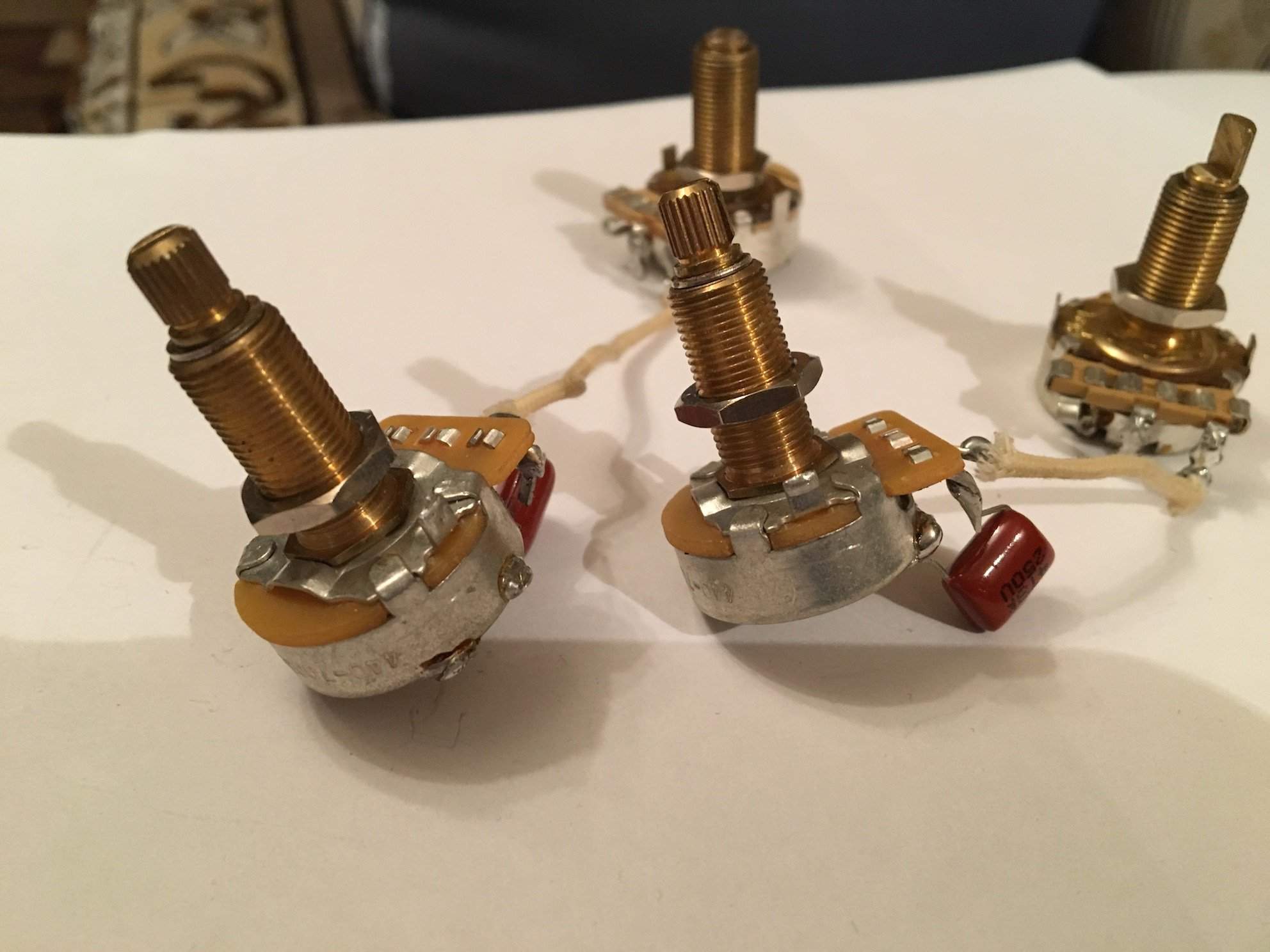 Продам потенциометры Gibson 2шт, б/у 4 года, стояли на моём Студио. В комплекте, как видно, 4 потенциометра, но у двух других сломаны усики, хотя сами поты рабочие. Отдам все четыре, с конденсаторами, неисправные пойдут на запчасти)). Поты рабочие, не шуршат, не скрипят. Цена - 1200руб.