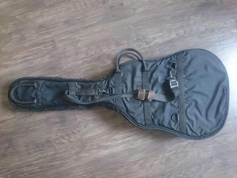 Продам б/у чехол для акустической гитары дредноут за 1000 руб в Москве, сильно поюзанный для акустики с катавеем (дредноут, вестерн). Возможно и гитара без катавея хорошо поместится - надо померить. Это родной чехол от пьезоакустики Fender La Brea 1990 года, производства Кореи, без надписей. Он довольно плотный, под не очень сильным дождем не промокает, форму хорошо держит, но и сложить можно. Уже немного выцвел и потерся. Один карман на молнии на передней стороне. Две плотные ручки для переноски и еще одна на голове грифа, основная молния с двумя бегунками. Переставляемый ремень для ношения на плече с карабинами на концах.