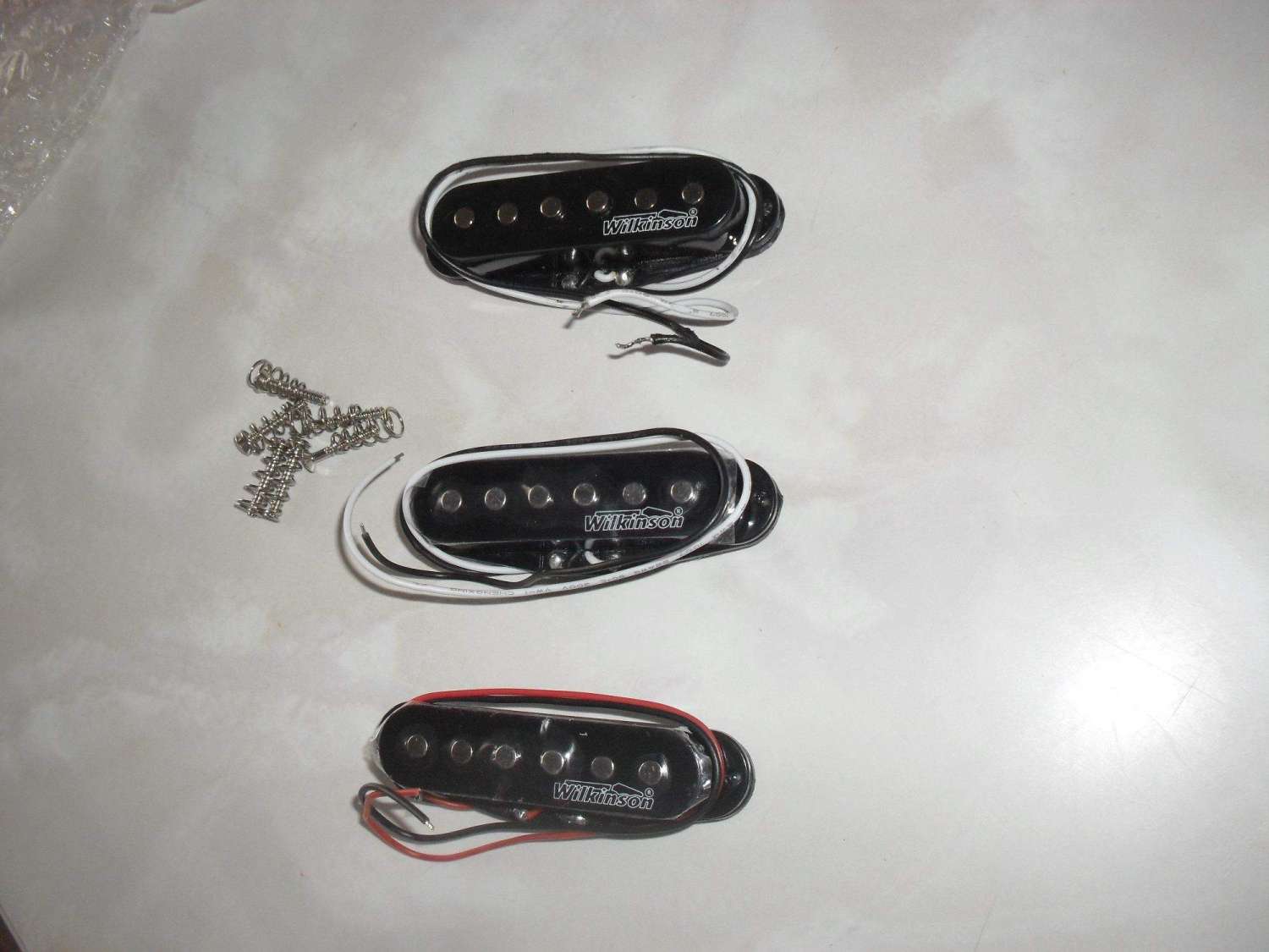 Сингы Wilkinson WVS( bridge+middle+neck, черного цвета)- винтажный выход, тепло и мягкое звучание. Использовался только нековый, остальные 2 в пленке.