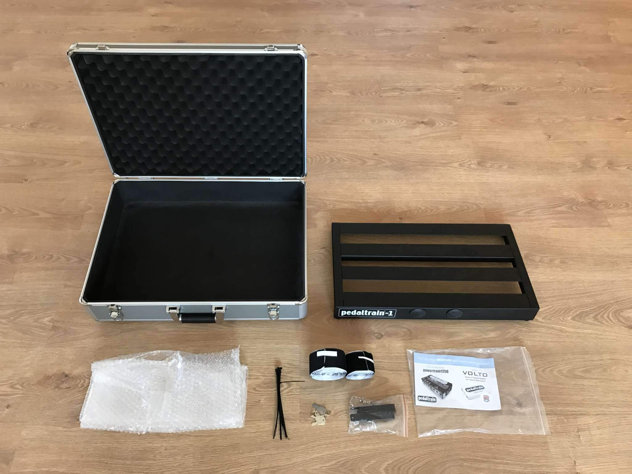 Состояние нового, липучка не наклеяна. Педалборд покупался в дополнение к основному PT-Pro, но так и не использовался. Кейс без царапин и вмятин. Жгуты, рулоны с липучкой и кронштейны для блока питания не распакованы, всё новое. Полный комплект ключей. На самой доске на двух центральных перекладинах есть пара царапин, после поклейки липучки видно не будет.