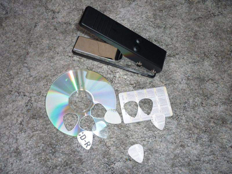Отличная штука, можно делать медиаторы из компакт дисков, кредиток и прочей пластиковой фигни.(Работает по типу дырокола)