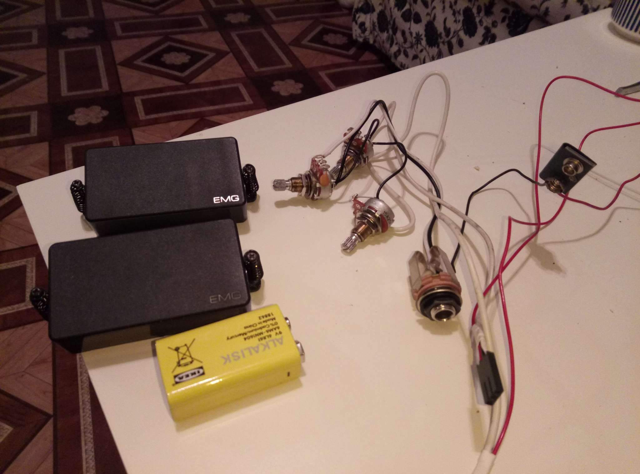 В комплекте распаянный комплект: 2 громкости, 1 тон, разъем под батарейку(плюс свежая батарейка), стереоджек, коннекторы. Вам останется только допаять переключатель.