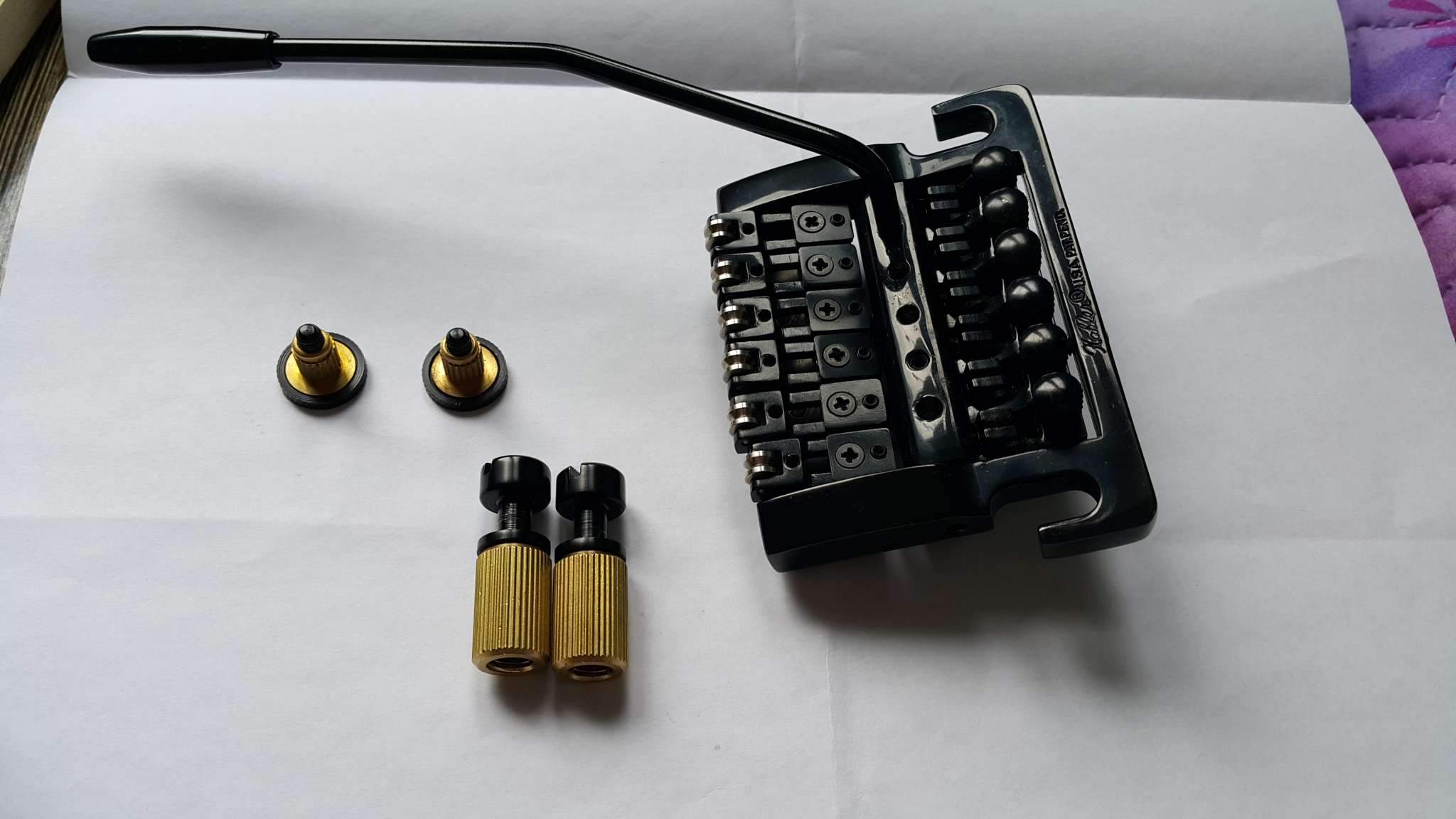 Оригинал, сделано в США. Состояние – отличное. Поставил и сразу снял, тк не подошло по дизайну. Цвет – черный. Подойдет для гитар с арочным верхом (а-ля лес пол) вместо tune-o-matic. Не путайте с Kahler fernandes или flyer, это тремоло на голову выше. В комплекте втулки и рычаг. Цена 10000р. Новое такое на официальном сайте стоит около 20.000р плюс доставка.