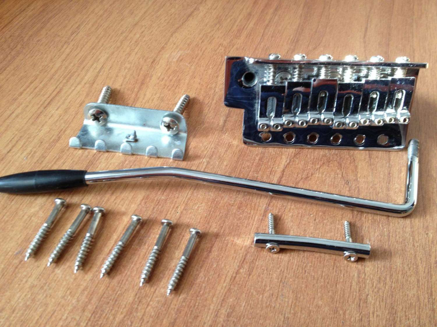 Продаю тремоло на 6 винтах и набор колков. В подарок отдам бриджевый хамб от неизвестной гитары, ручку громкости и пару стреплоков. Идеально подойдет для восстановления недорогих гитар.