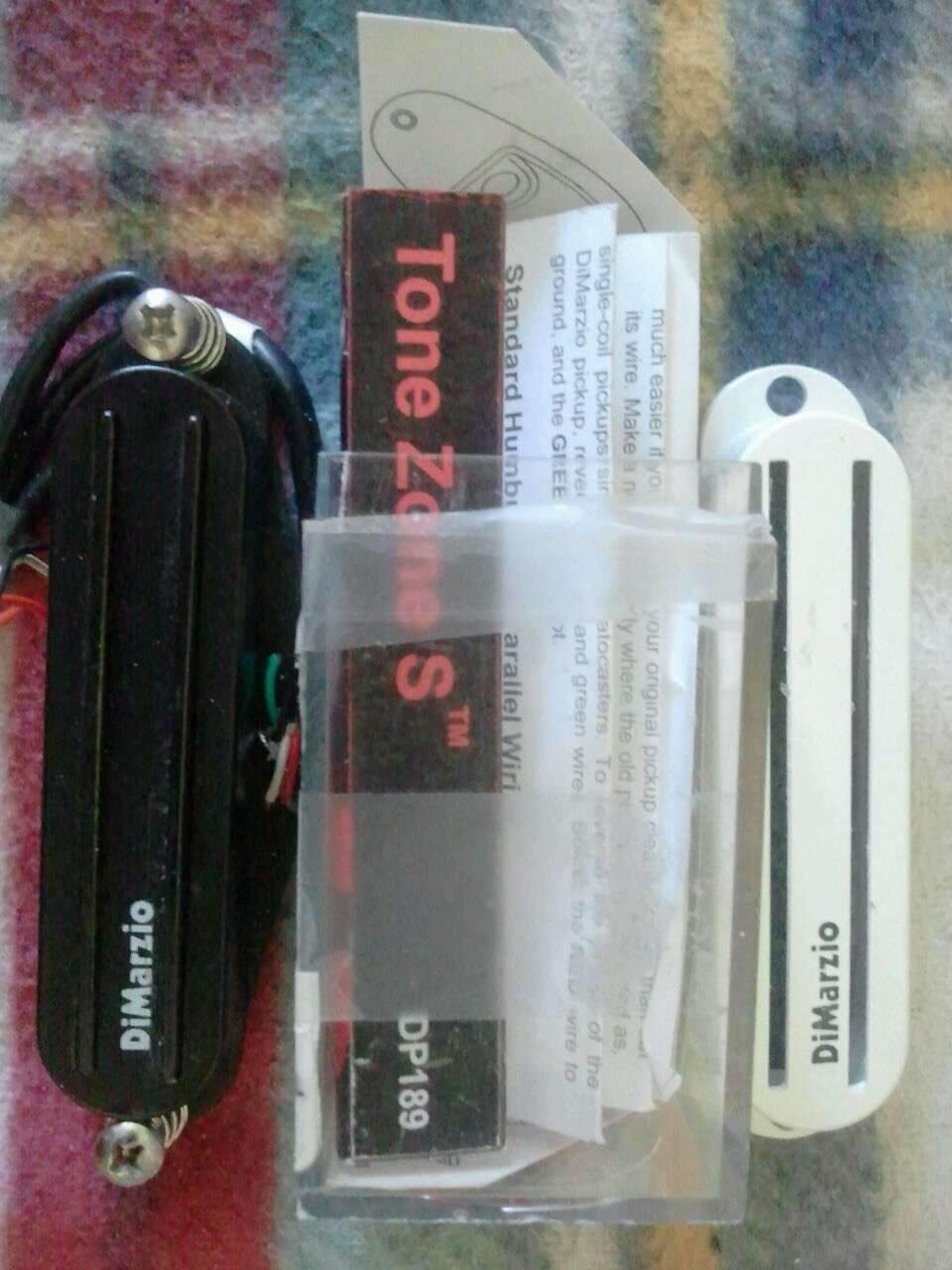 2.Звукосниматель DIMARZIO THE TONE ZONE S DP189W, звукосниматель для электрогитары, хамбакер в корпусе сингла, чёрная +белая крышка, количество выводов - 4, магнит Ceramic, выходное напряжение 300 мВ, сопротивление 12,39 кОм, рекомендуется для установки в позиции около бриджа, звуковые характеристики: высокие - 4,5 средние - 8,5 низкие - 8,0. Производство: США,отлично подойдёт для тяжа и модерна.Цена4000