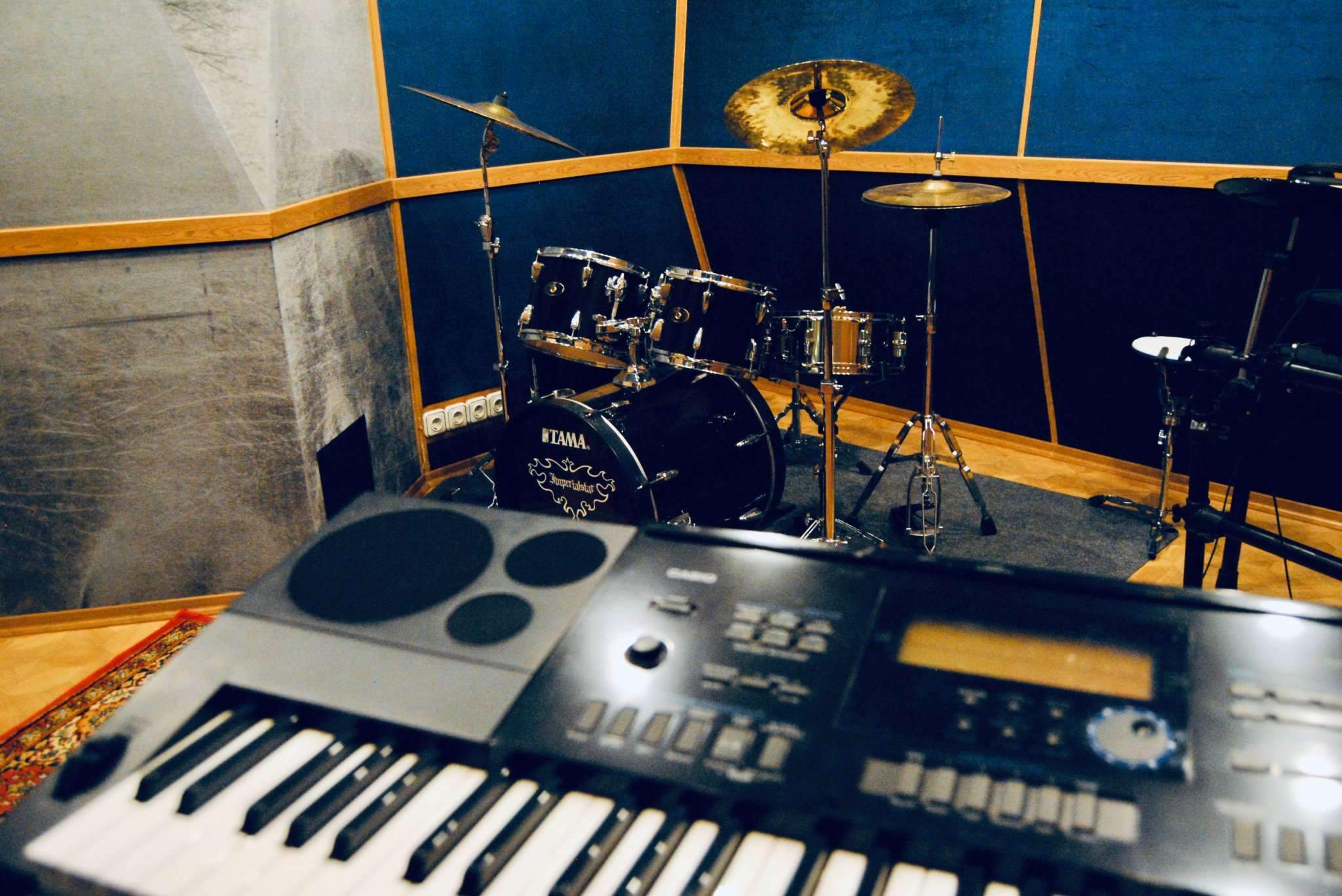 Просторная многоугольная комната 15м2 с выстроенной акустической геометрией для более ровного и насыщенного звучания. Комната подойдёт для репетиций как частных музыкантов так и коллективов любой направленности.