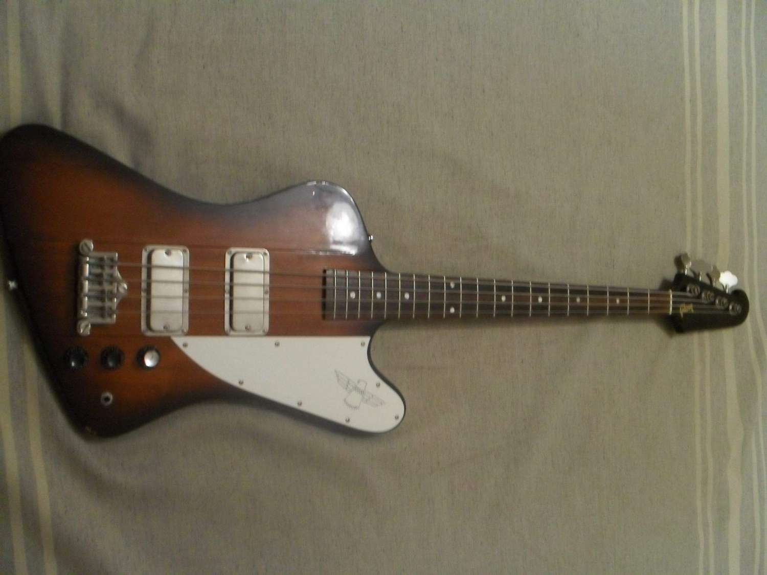 есть трещина на грифе, у бошки, не смертелньая - хороший мастер сделает