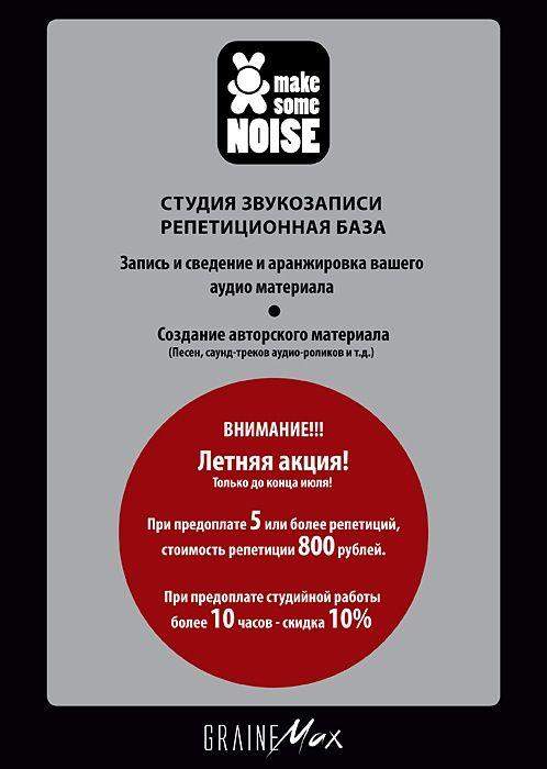 Make Some Noise – профессиональная многопрофильная студия звукозаписи, созданная коллективом энтузиастов и профессионалов своего дела. Большой опыт наших специалистов и качественная аппаратура позволяют делать записи высшего качества. В персонал студии входят профессиональные аранжировщики, композиторы и сессионные музыканты.