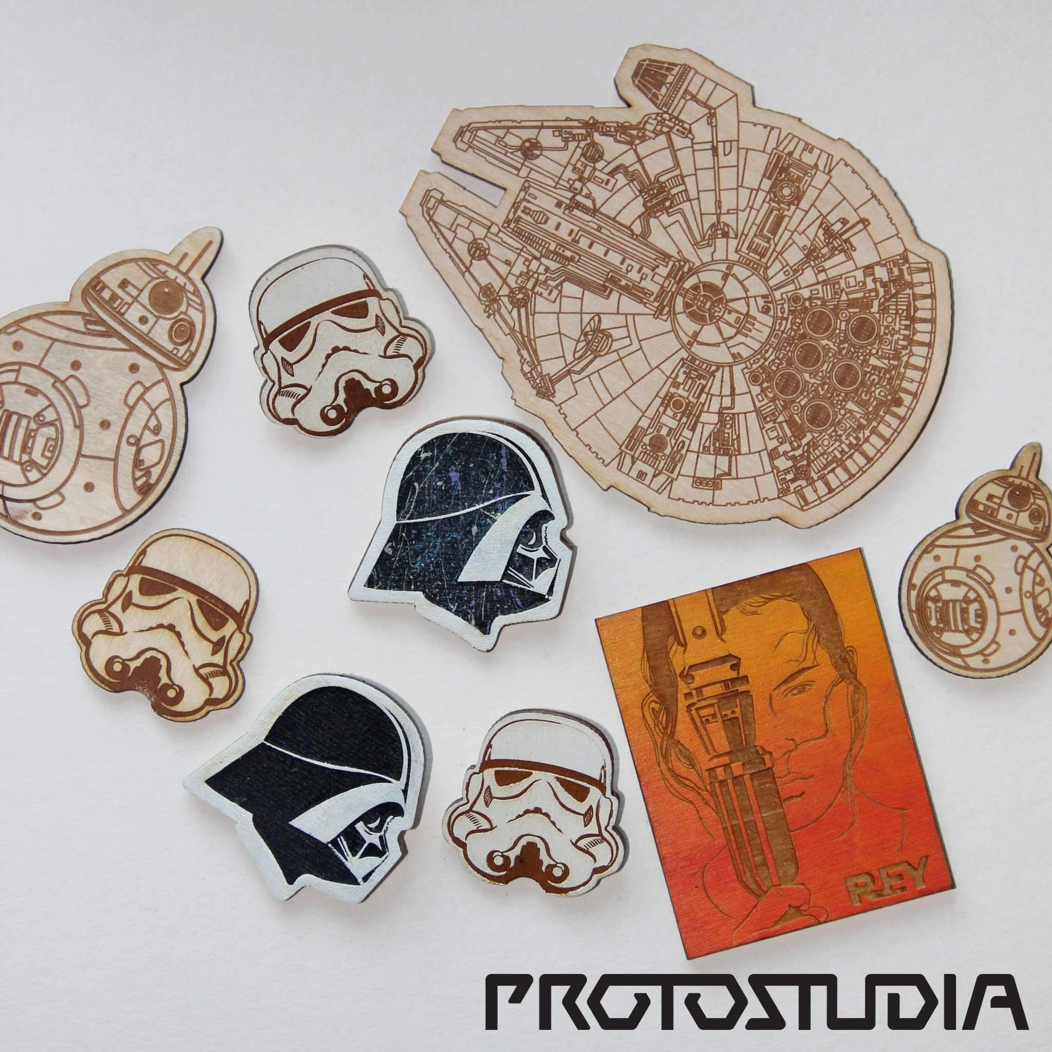 Мы ООО "Протостудия", предлагаем необычный мерч для концертов. Магнитики, значки, брелоки. Раскрашенные вручную и просто гравированные. И все это из дерева.