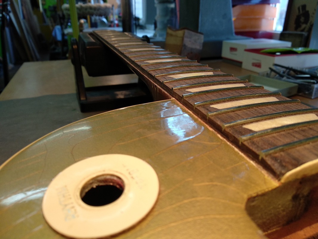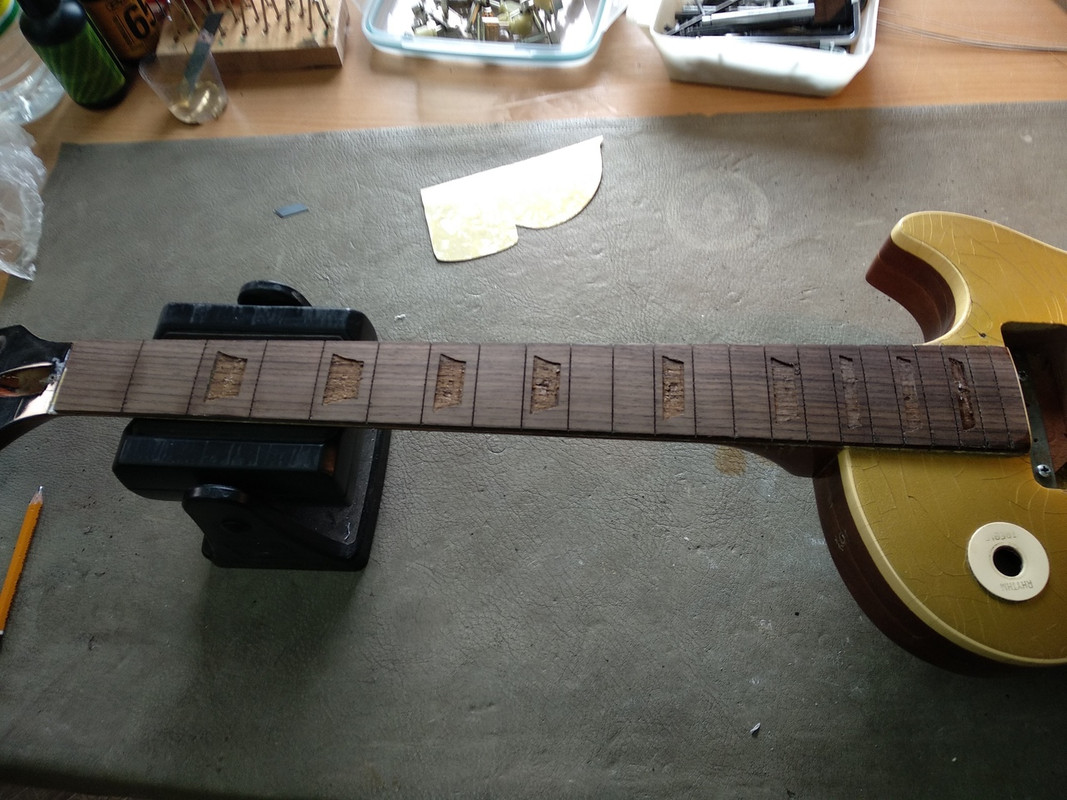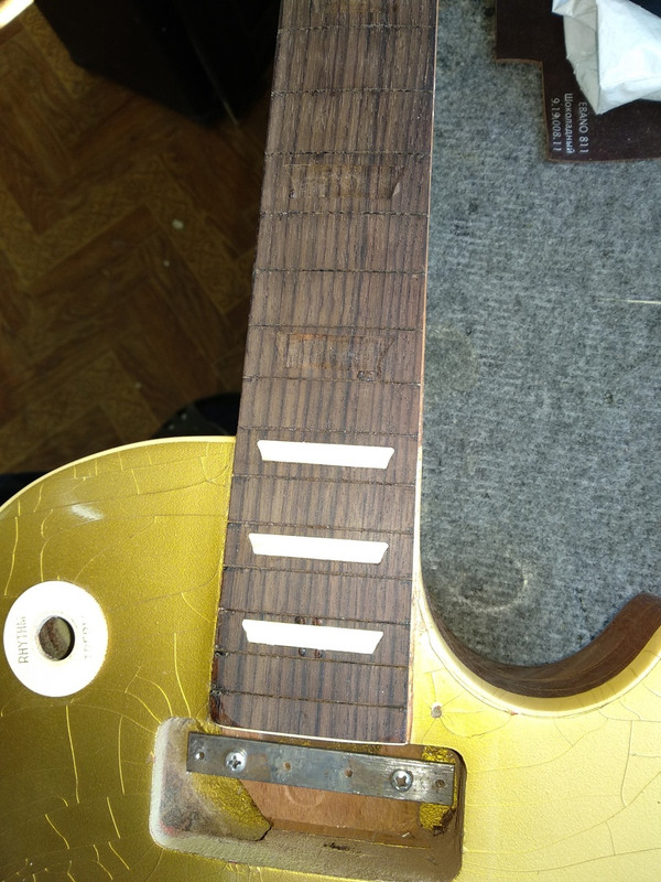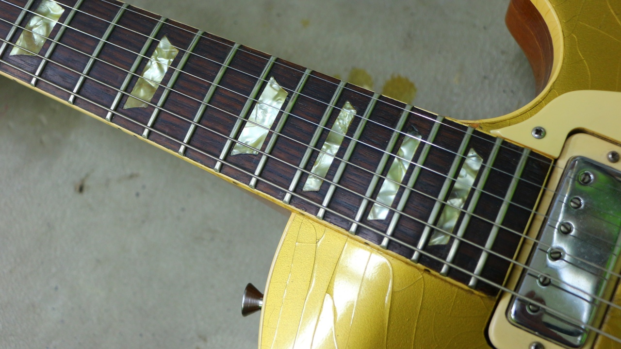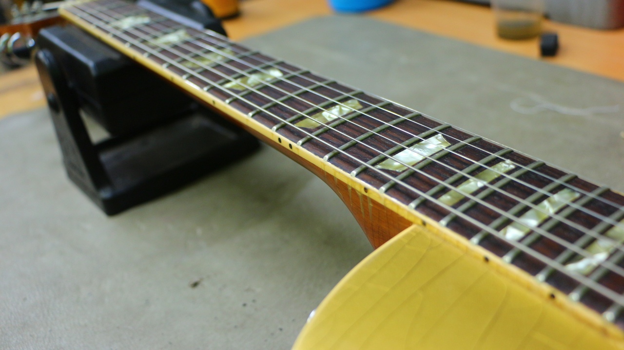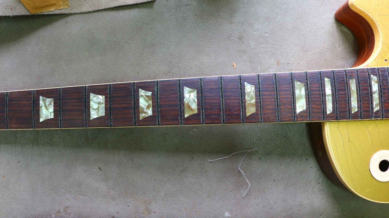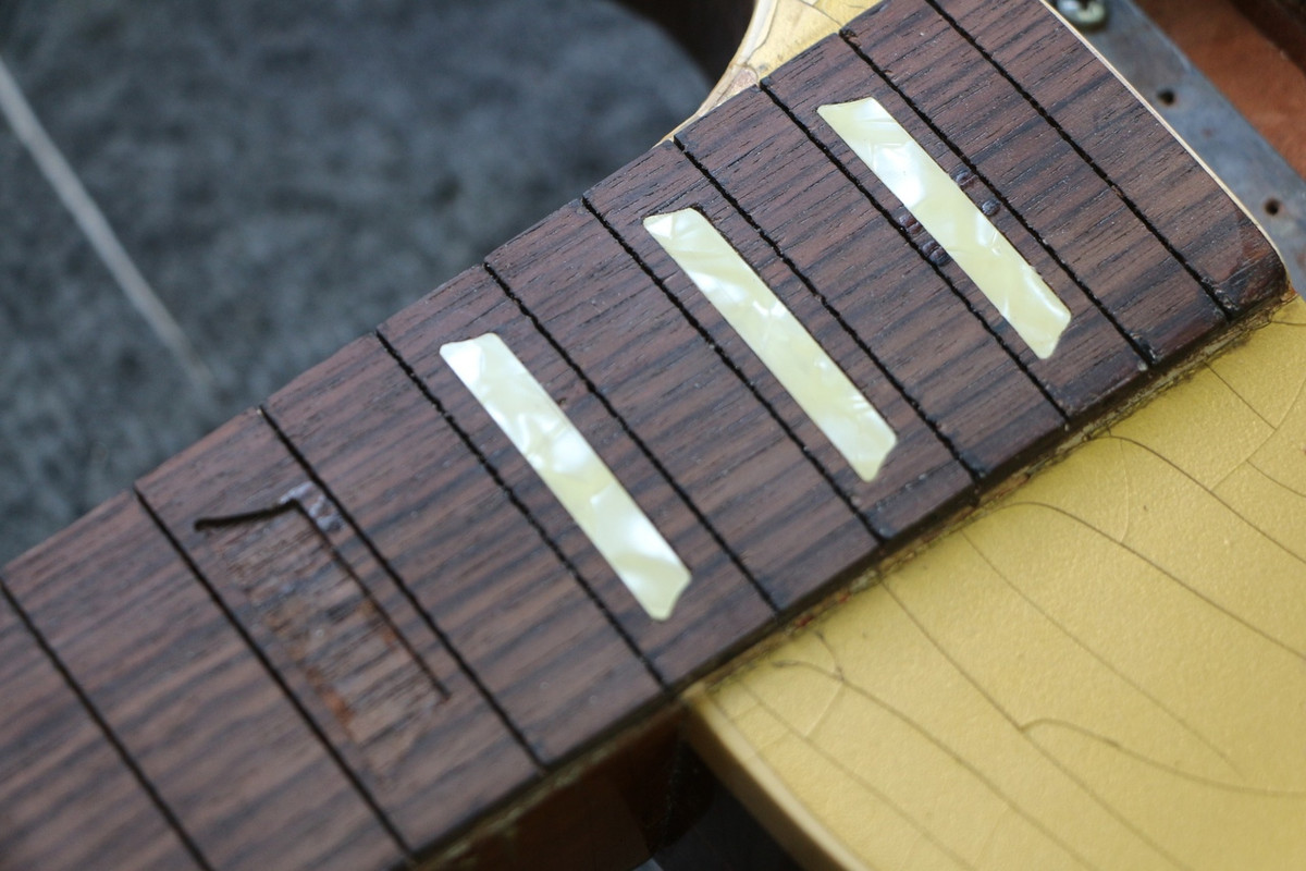 Замена ладов с восстановлением биндинга и инкрустации на Gibson Les Paul Deluxe 1971 года Gold top