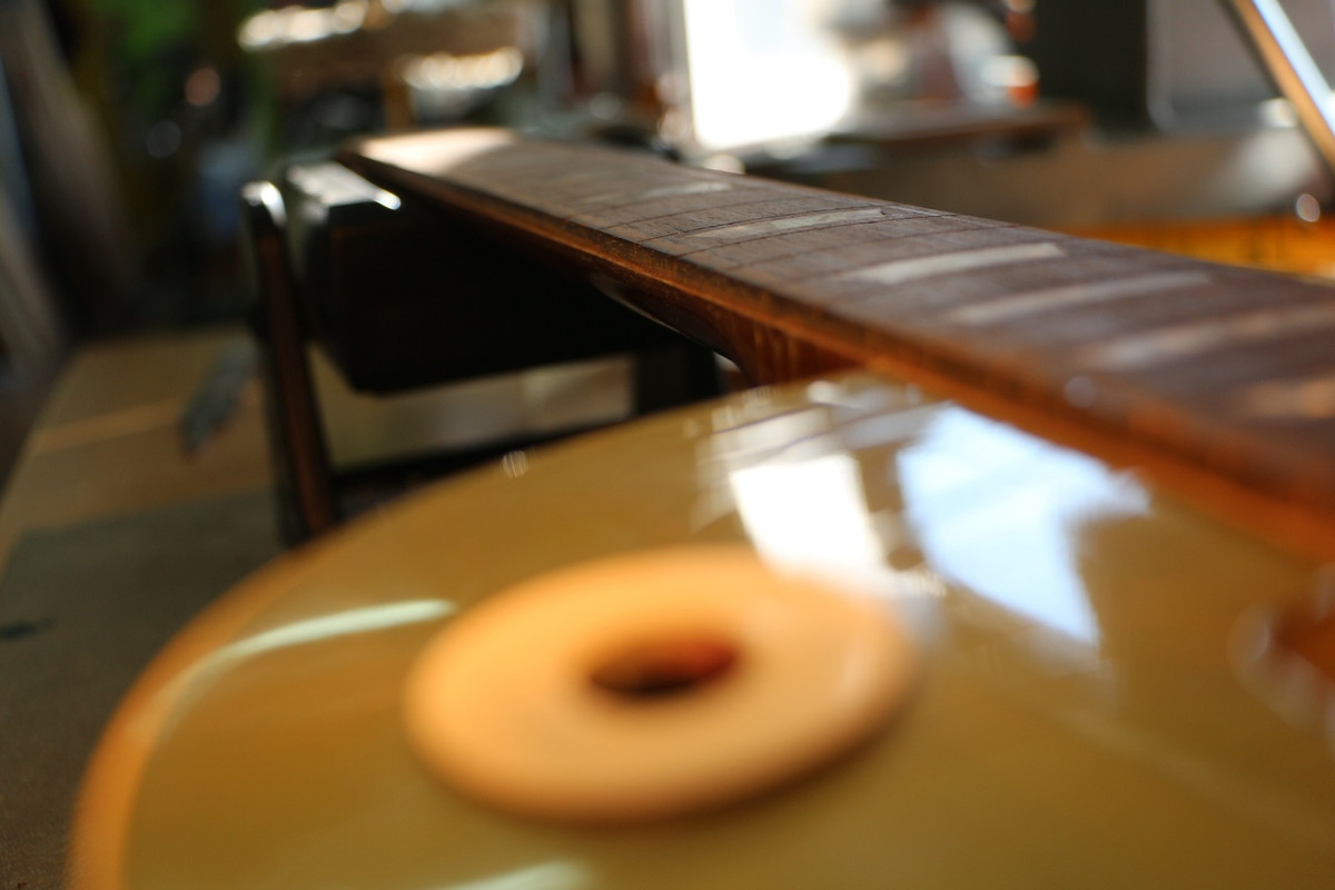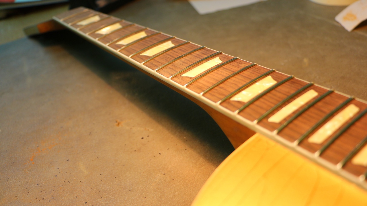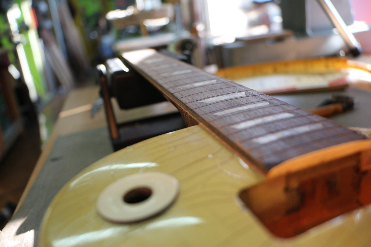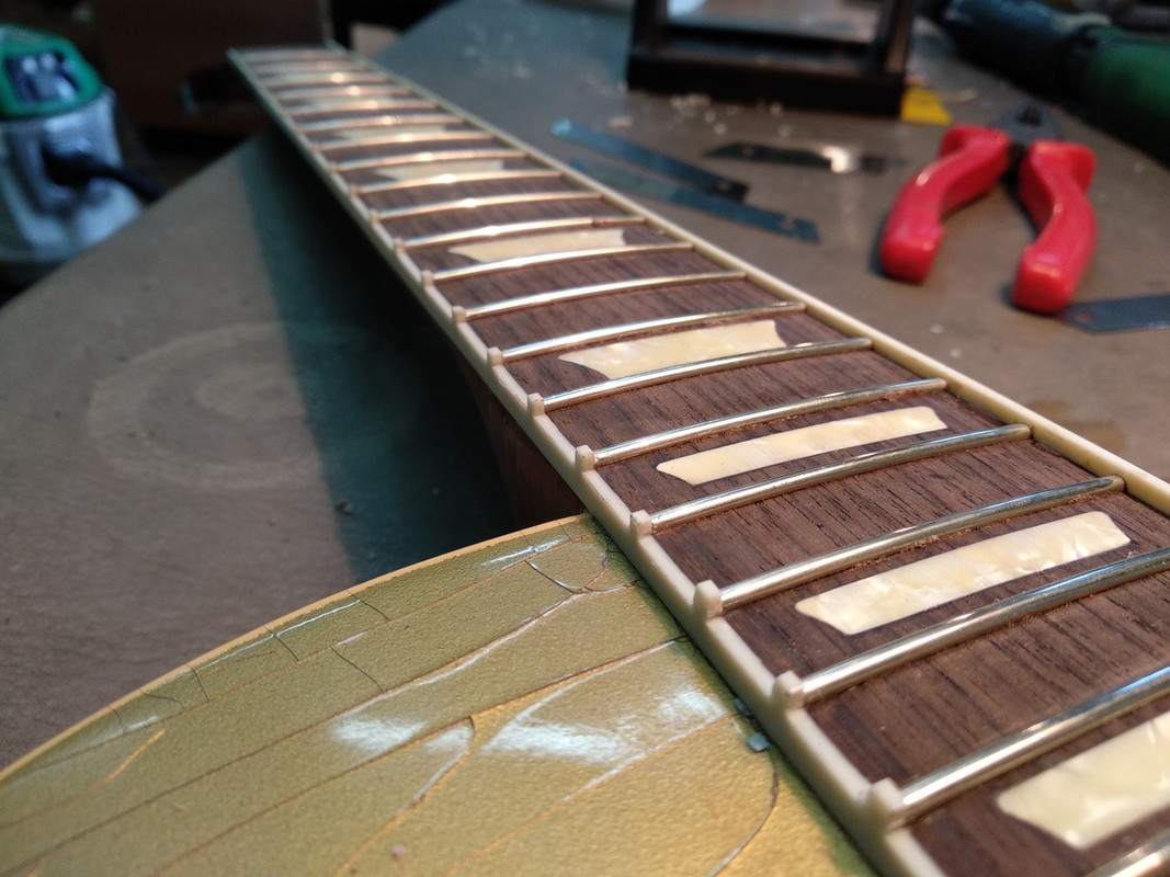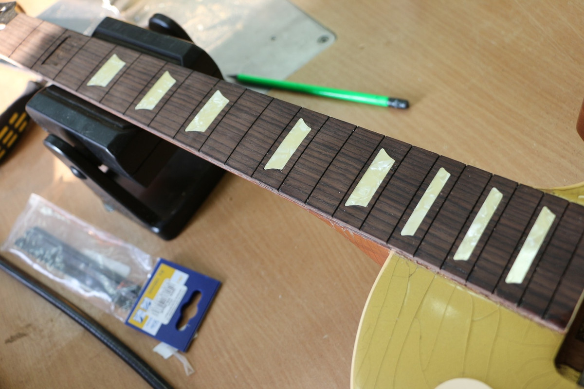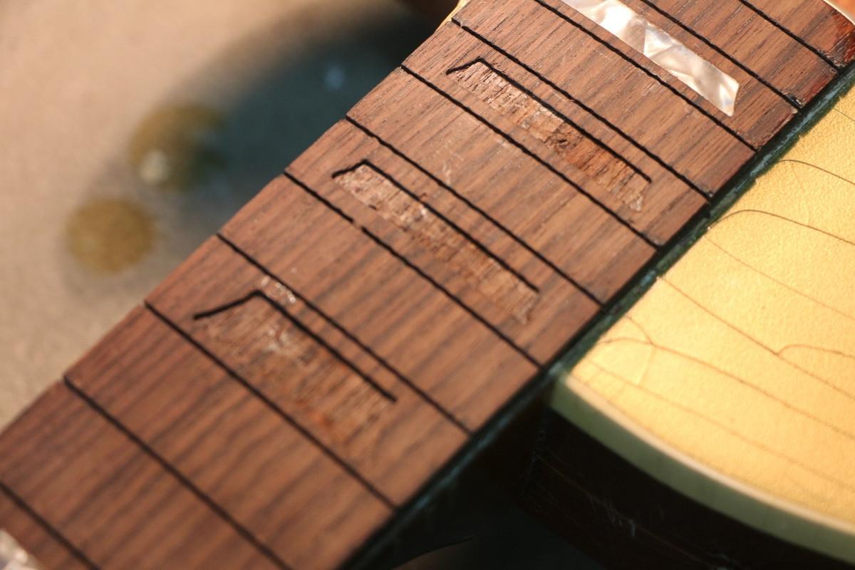 Замена ладов с восстановлением биндинга и инкрустации на Gibson Les Paul Deluxe 1971 года Gold top