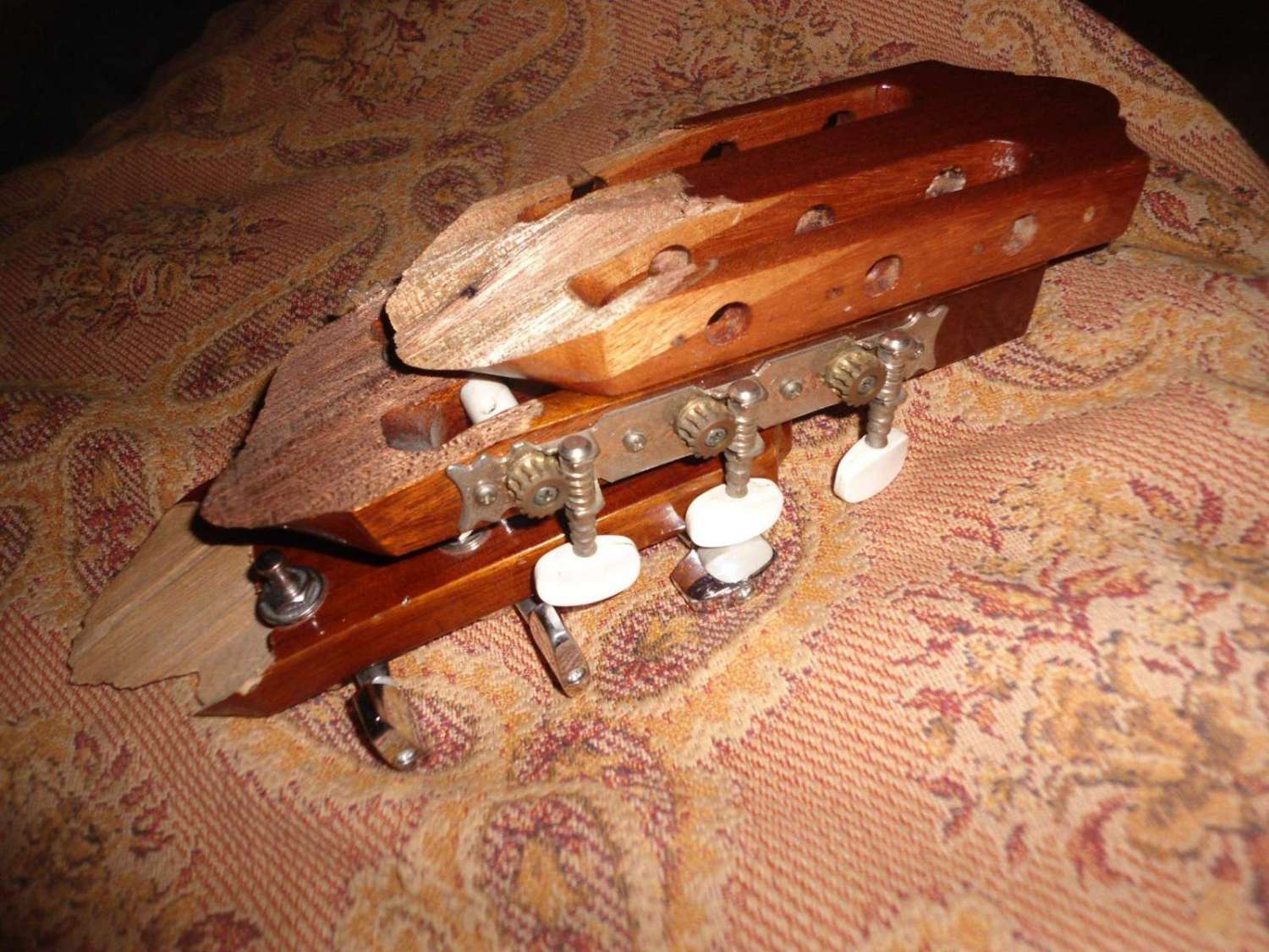 Поэтому, ручной фрезой выбираем на тыльной стороне грифа паз через склейку, вытачиваем вставочку из палисандра, и сажаем ее на свежий, горячий, только что сваренный рыбий клей). Паз глубокий, до самой анкерной гайки, вставочка посажена туго, впритык, и есть вероятность, что она вовсе не будет лишней во всей этой истории.