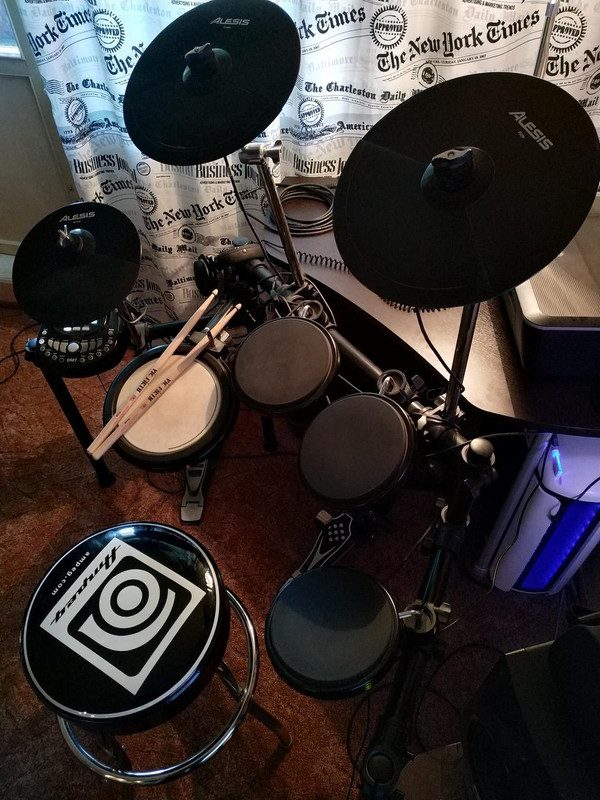 Электронные барабасы. В комплект входят: звуковой модуль DM7 - 1 шт, игровые пэды - 3 шт, трехзонный пэд малого барабана - 1 шт, басовый пэд с педалью - 1 шт, тарелки - 2 шт, Хэт -1 шт., педаль для хэта, рама с креплениями и кабелями. Замечательно работает с самыми известными барабанными VSTi модулями типа Superior Drummer 3, Addictive Drums и т.д. Подойдёт как для тренировок, так и для записи демок, да и вообщем-то полноценных композиций, внося "жизни" в барабанные партии. Состояние хорошее, есть небольшая помятость модуля бочки.