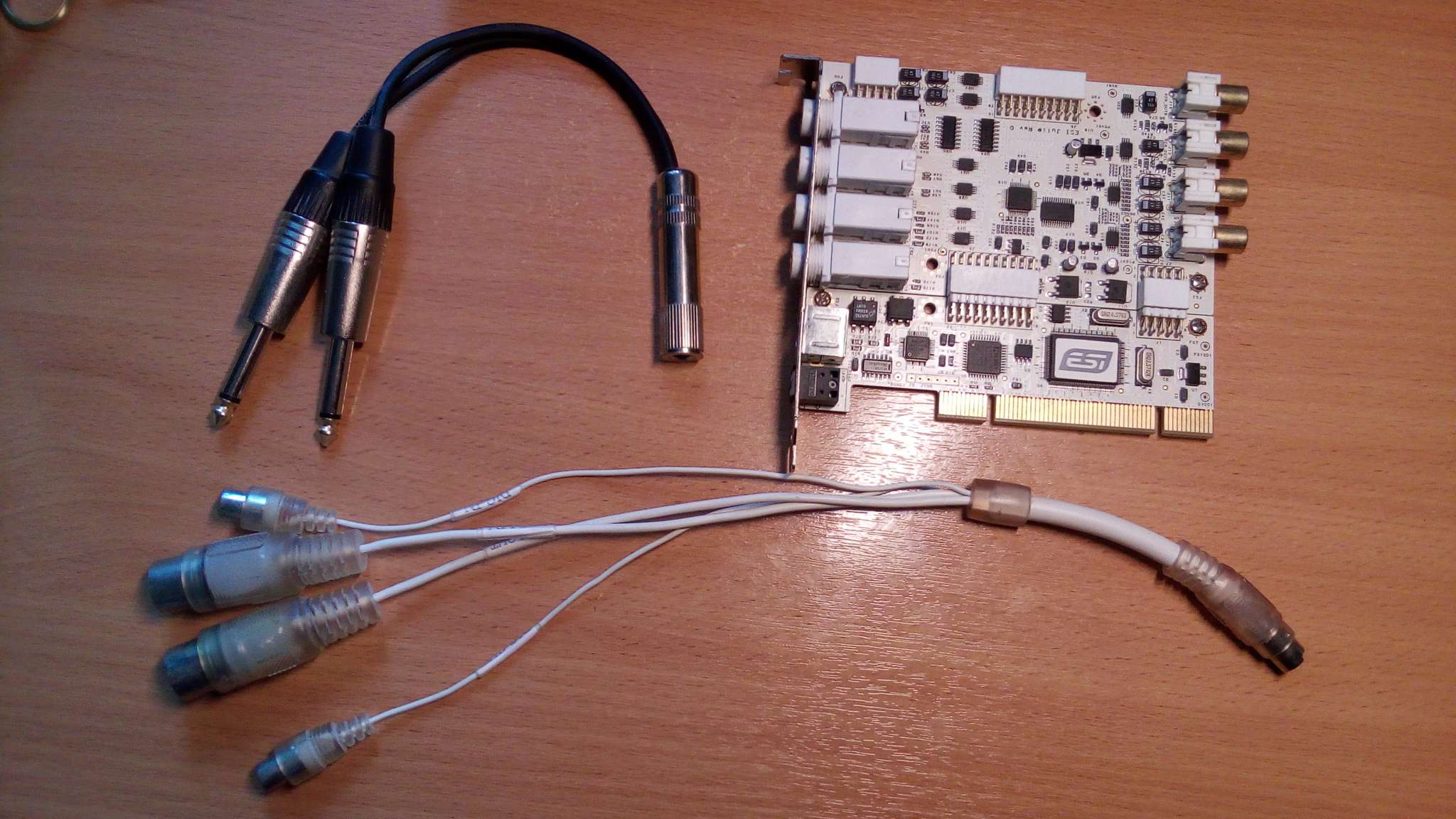 От себя ещё добавлю разветвитель со стереоджека на два моно, поскольку входы и выходы на карточке отдельные для правого и левого каналов. Мне в своё время пришлось докупать разветвитель отдельно, но я готов его отдать в комплекте с картой. За всё - 6000 Р.