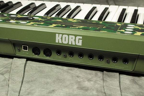 компактный и легкий синтезатор со звуками Korg Triton редкого камуфляжного цвета.