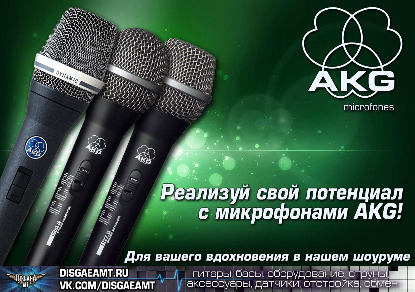 В нашем уютном шоуруме всегда представлен широкий ассортимент микрофонов от AKG и других производителей. Приходите к нам за своим вдохновением!