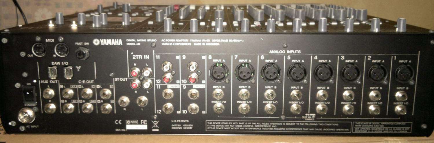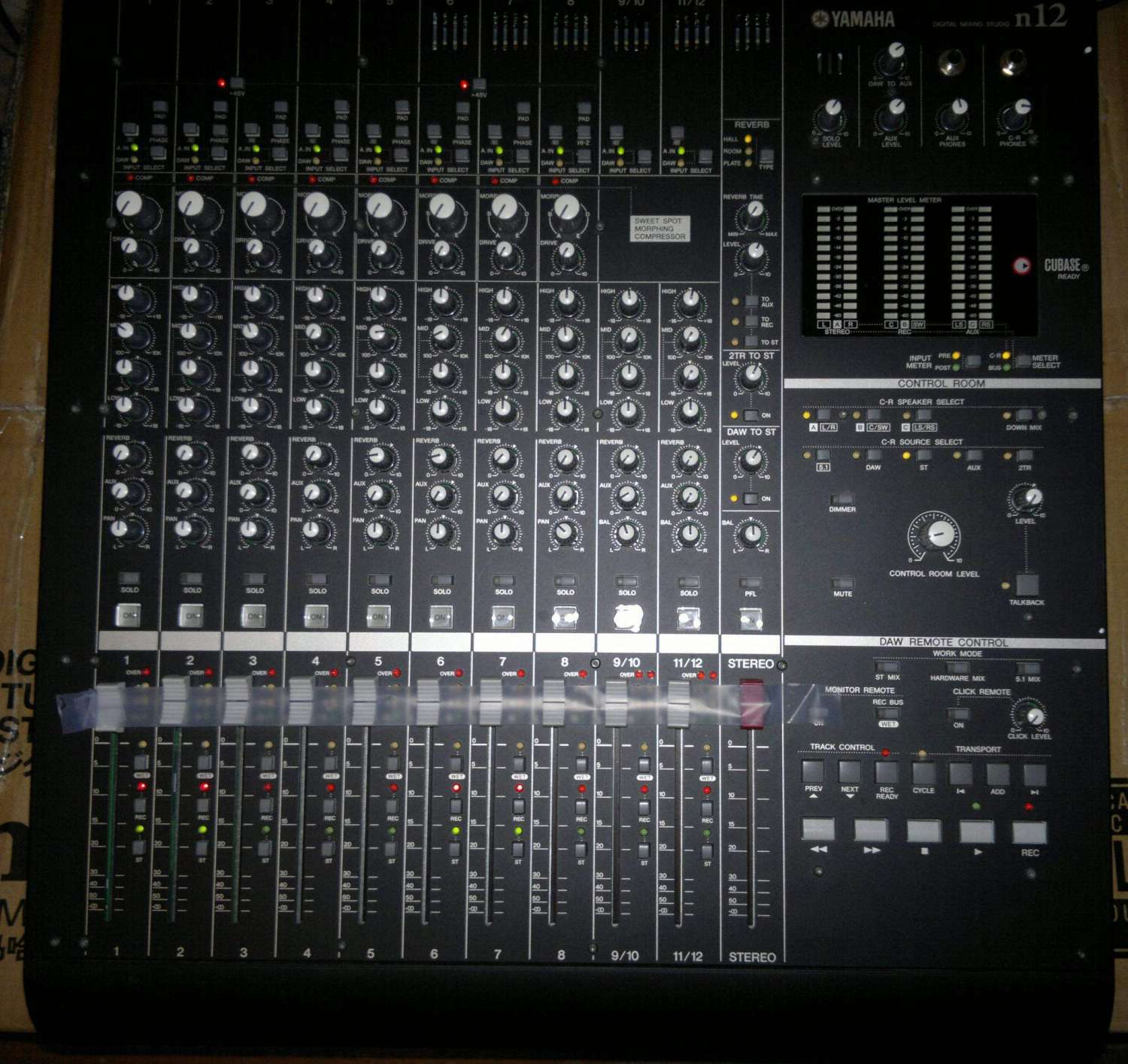 Цифровой микшер N12 имеет восемь моно- и два стереоканала, два выхода посылов (джеки), три пары мониторных выходов (джеки) с кнопками выбора, шесть светодиодных индикаторов выходного уровня с переключателем режима (показ уровней шести мониторных выходов или показ уровней основной шины, шины записи и вспомогательной шины), кнопку преобразования шестиканального пространственного сигнала с компьютера в двухканальный, регулятор уровня солирования, регулятор уровня вспомогательной шины, встроенный микрофон обратной связи с кнопкой включения и регулятором уровня. Есть три режима работы с компьютером: получение стереомикса для мониторинга, получение отдельных каналов для микширования, получение многоканального пространственного сигнала формата 5.1 для мониторинга. Используются фейдеры длиной 100 мм. Одновременная запись 12 каналов по IEEE 1394