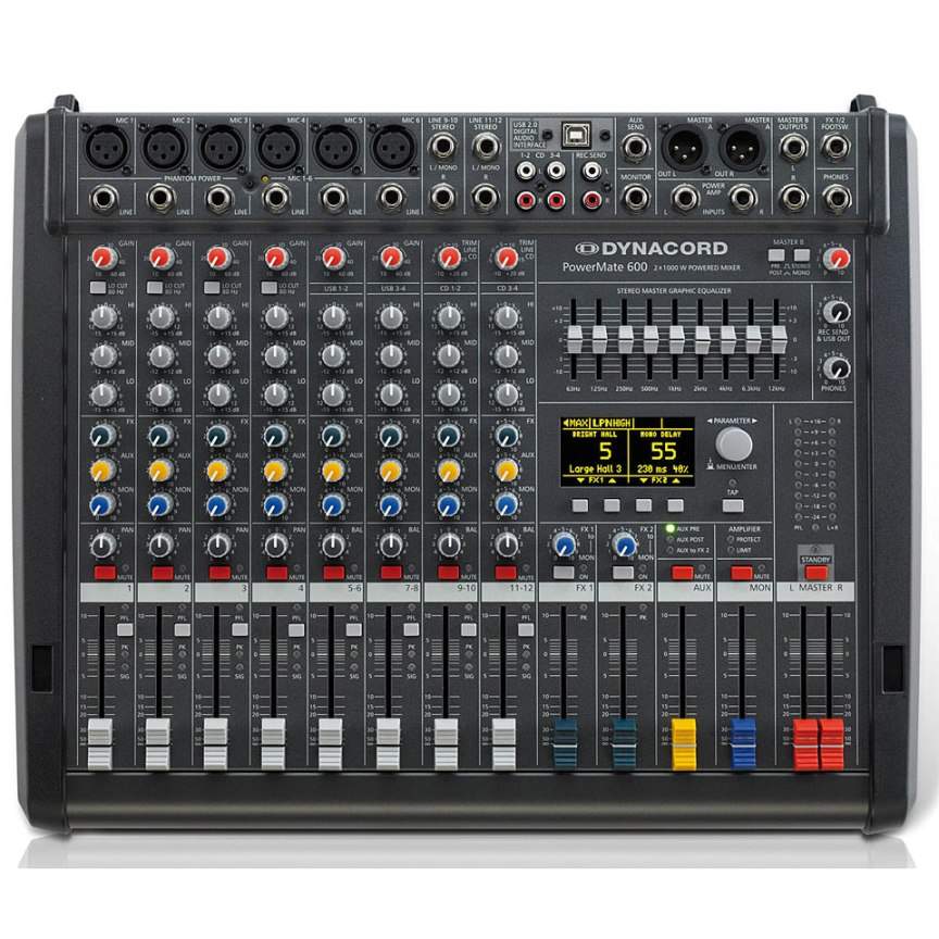 1. Dynacord PowerMate 600-3MIG активный микшерный пульт, 2-канальный усилитель класса D 1000 Вт (4 Ом) на канал, 24-битный стерео процессор, 4-кан.USB интерфейс, пр-во Германия
