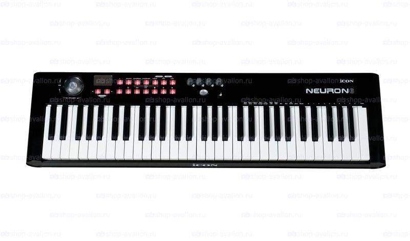 Neuron 6 Black MIDI-клавиатура USB фортепианного типа, 61 клавиша, джойстик, фейдер, 14 кнопок с MIDI функциями, 20 ячеек памяти, питание USB 2.0. Цвет чёрный