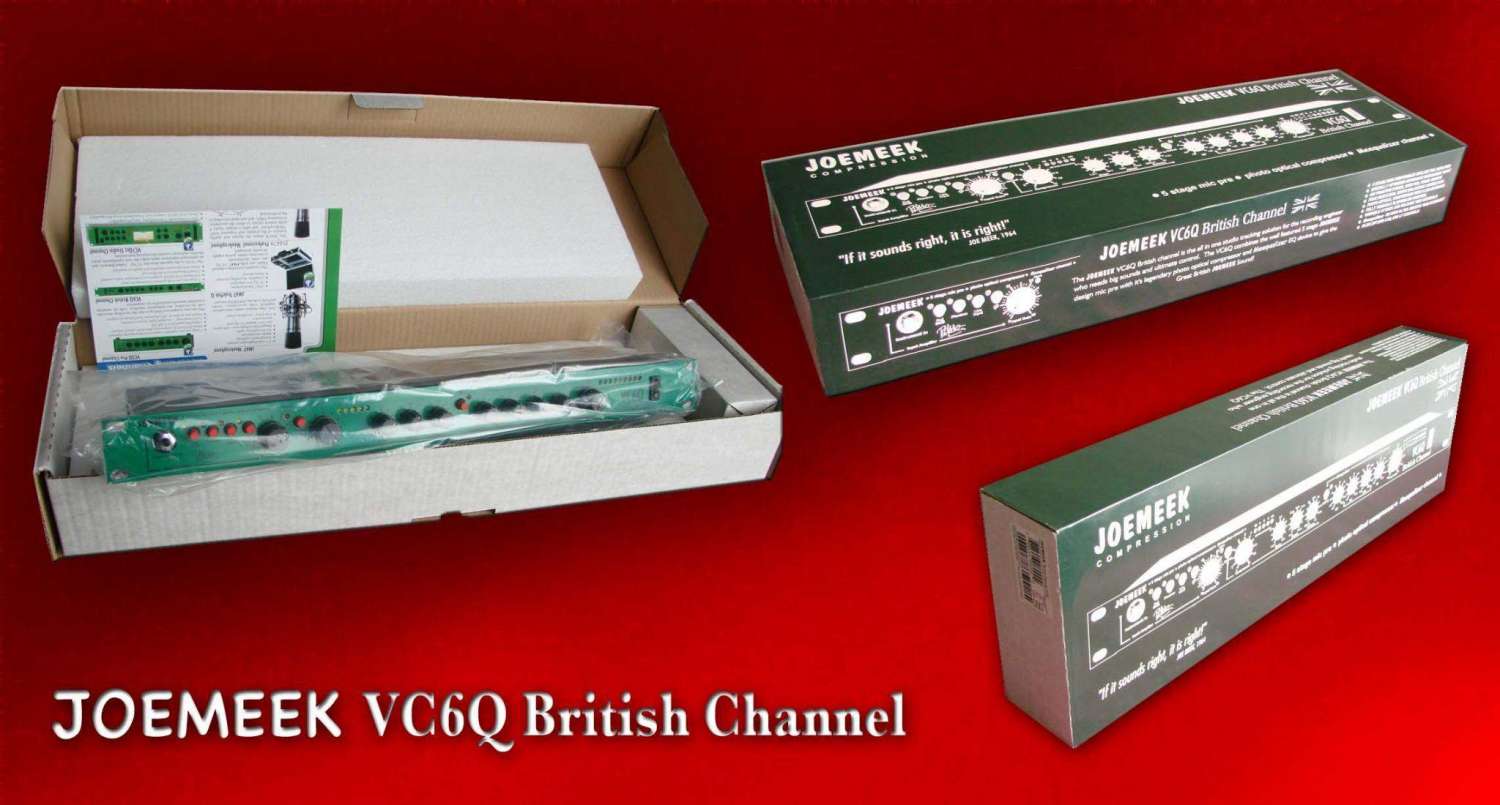 Joemeek – это имя продукции и зарегистрированная торговая марка производителя приборов динамической обработки звука для профессиональных и полупрофессиональных звуковых студий – Fletcher ElectroAcoustics Ltd. Joemeek VC6Q British Channel(3 in 1) - кондиционер входного сигнала, состоящий из комбинации 5-каскадного микрофонного предусилителя, оптокомпрессора и эквалайзера. Эти функции делают прибор идеальным для обработки вокальных и инструментальных треков при студийной записи и "живой" работе. Агрегат продаётся за 16.000 рублей в оригинальной упаковке и с таким же полным описанием.