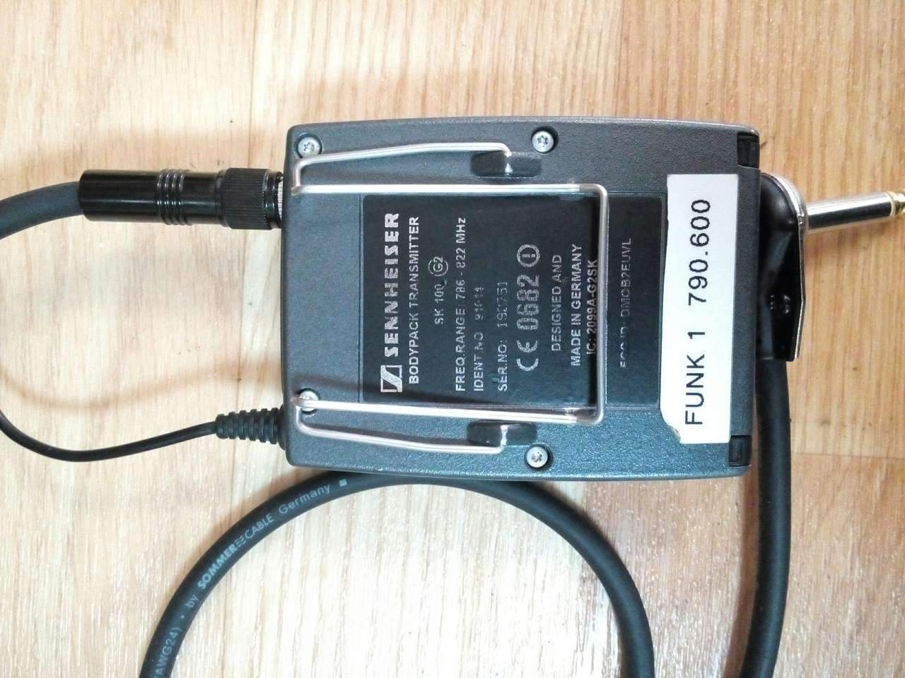 Плюс нательный передатчик SK100 . Диапозон - D (UHF 786-822 MHz) . Для подключения головного микрофона и гитар . В комплекте шнур для подключения гитары .